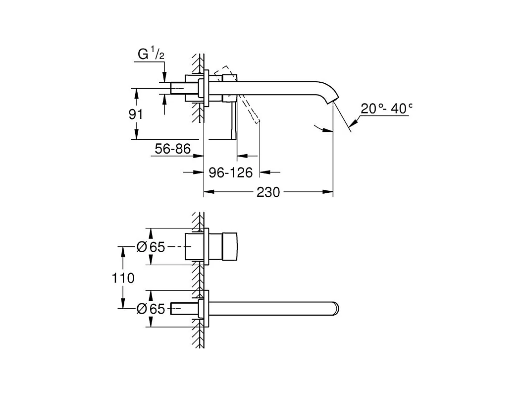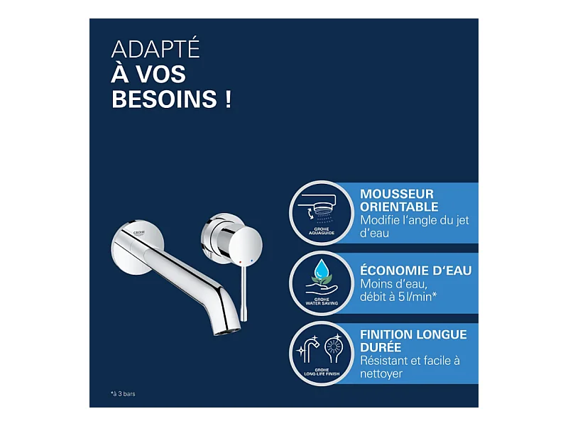 Lot de 2 mitigeurs lavabo mural GROHE Essence 2 trous L Chromé + corps encastré