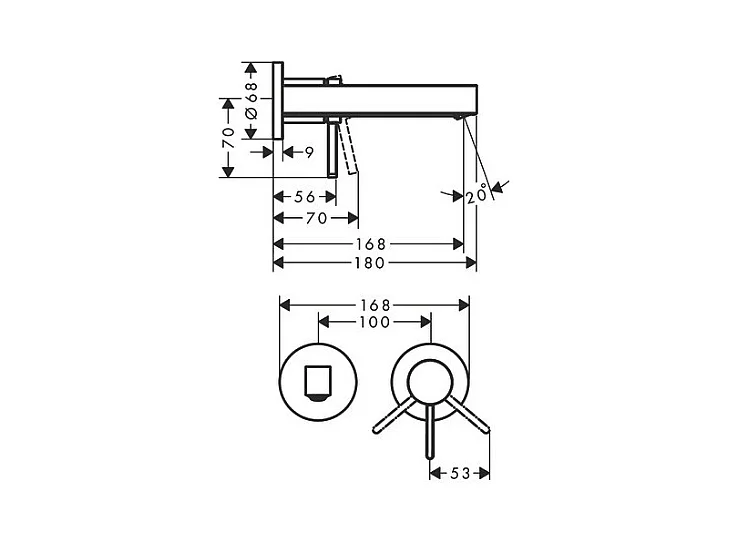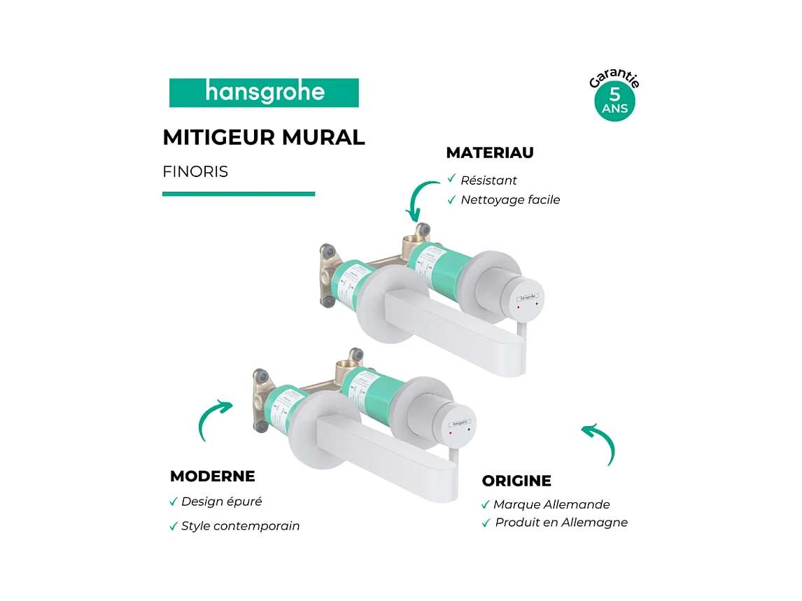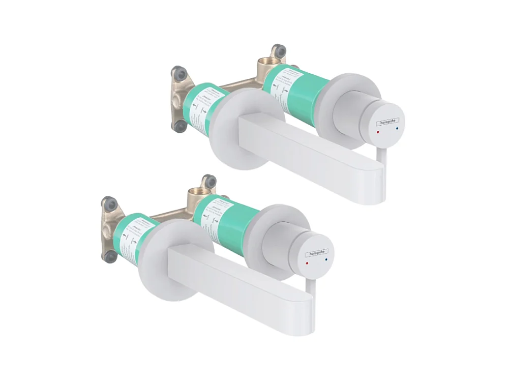 Lot de 2 mitigeurs lavabo mural HANSGROHE Finoris 165 mm + bonde à écoulement libre Blanc mat + Corps encastré