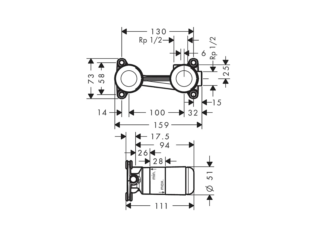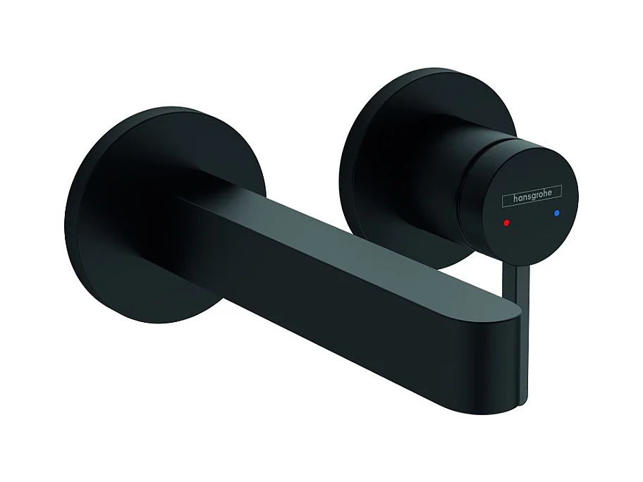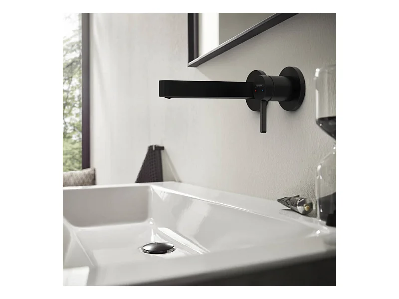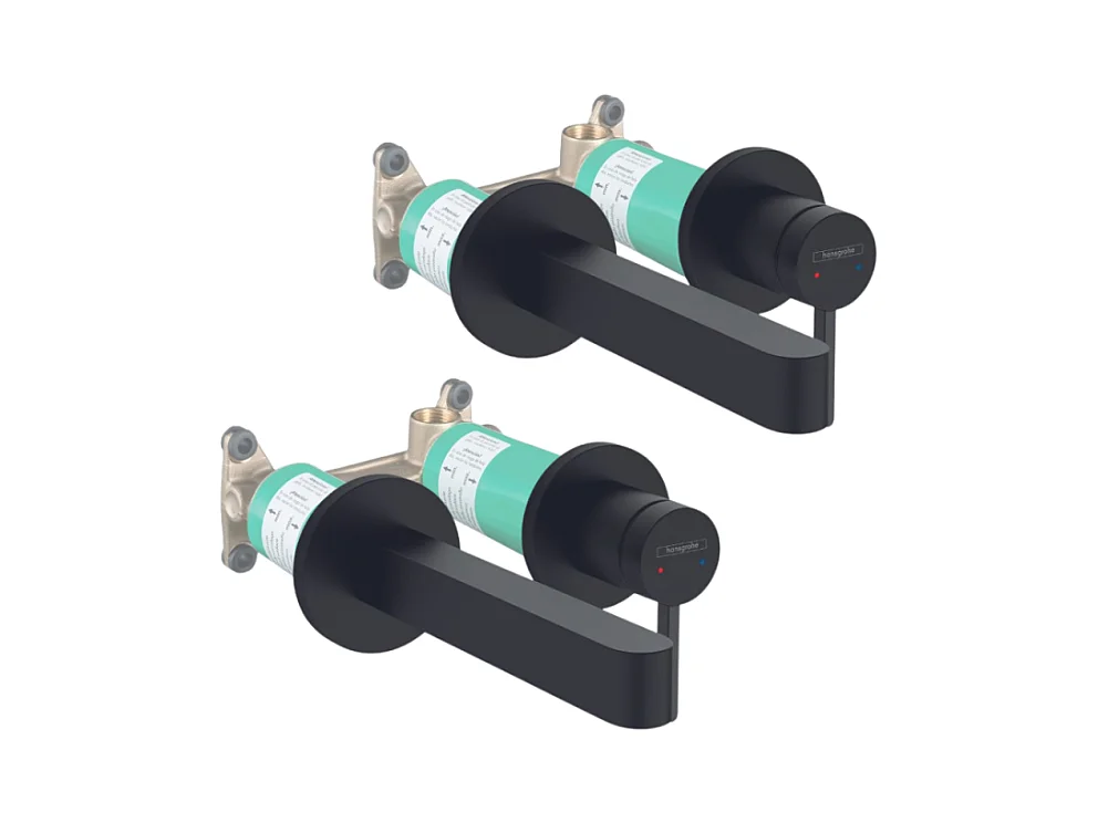 Lot de 2 mitigeurs lavabo mural HANSGROHE Finoris 165 mm + bonde à écoulement libre Noir mat + Corps encastré