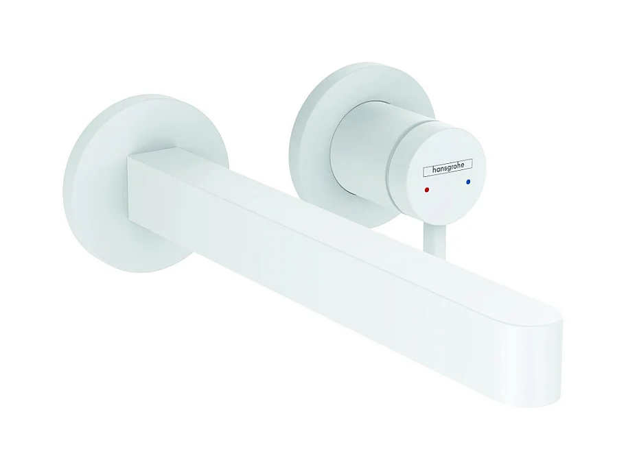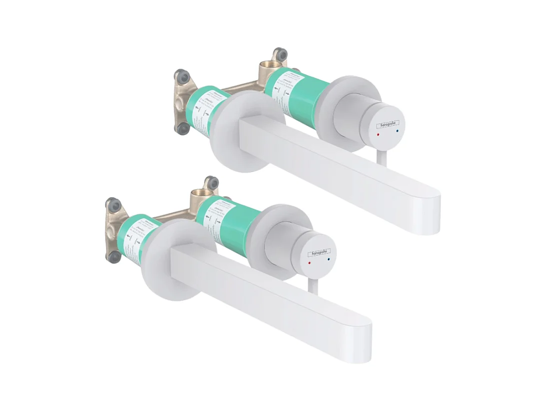 Lot de 2 mitigeurs lavabo mural HANSGROHE Finoris 255 mm + bonde à écoulement libre Blanc mat + Corps encastré