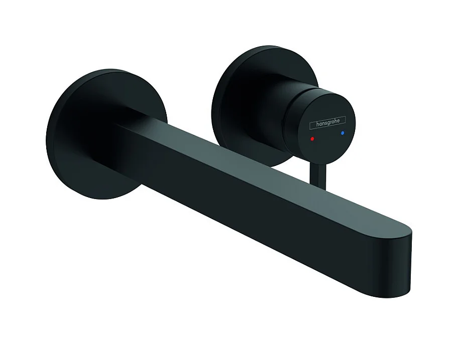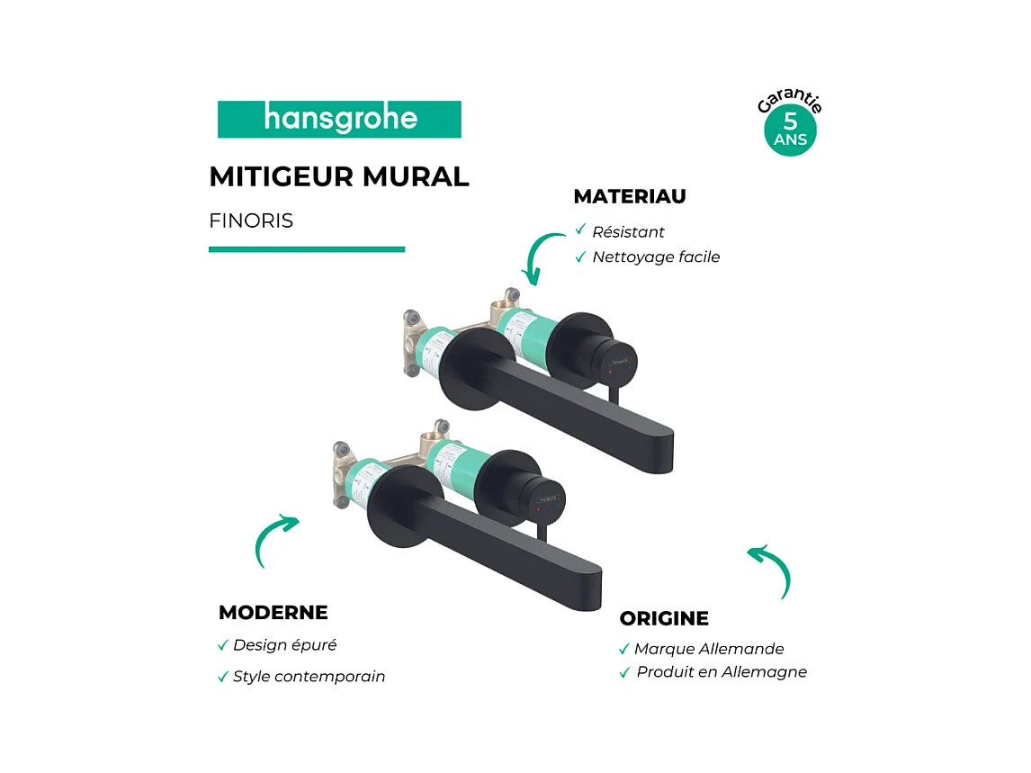 Lot de 2 mitigeurs lavabo mural HANSGROHE Finoris 255 mm + bonde à écoulement libre Noir mat + Corps encastré