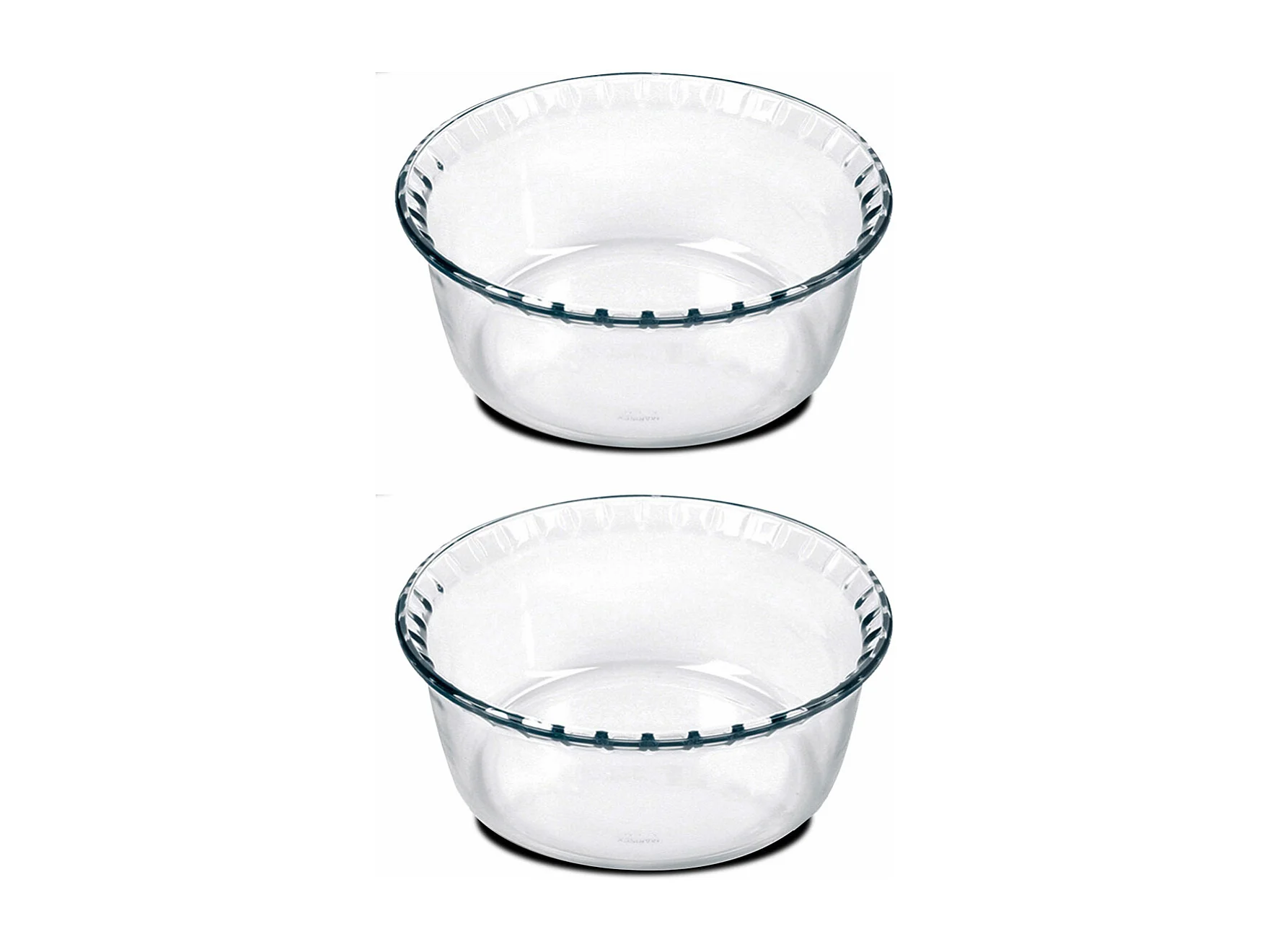 Lot de 2 moule soufflé rond, moule en verre fileté, plateau réfractaire, plat à four moule de cuisson, capacité 2.4 L - Diamètre 21.5 x Hauteur 9.8 cm