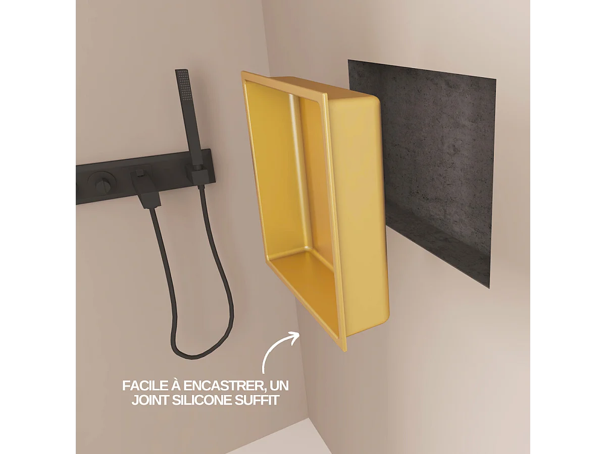 Lot de 2 Niches de Douche, Rangement mural de Salle de Bain et Douche 30x30cm Or Satiné, NOOK by SANIZÉO
