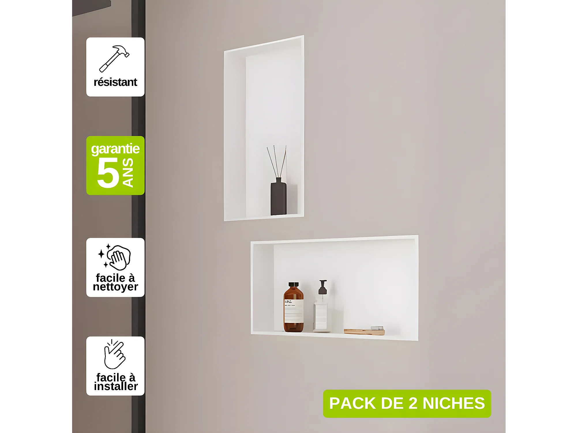 Lot de 2 Niches de Douche, Rangement mural de Salle de Bain et Douche 30x60cm Blanc Satiné, NOOK by SANIZÉO