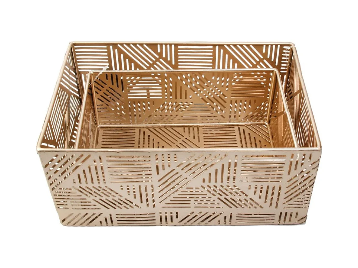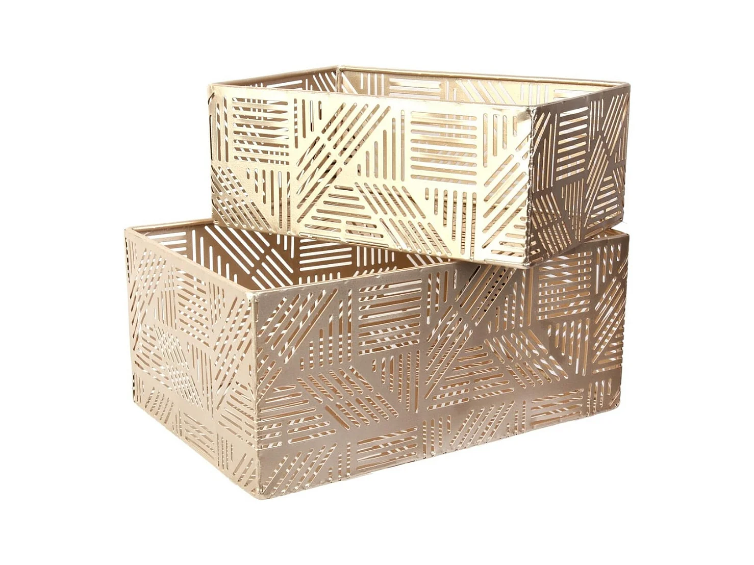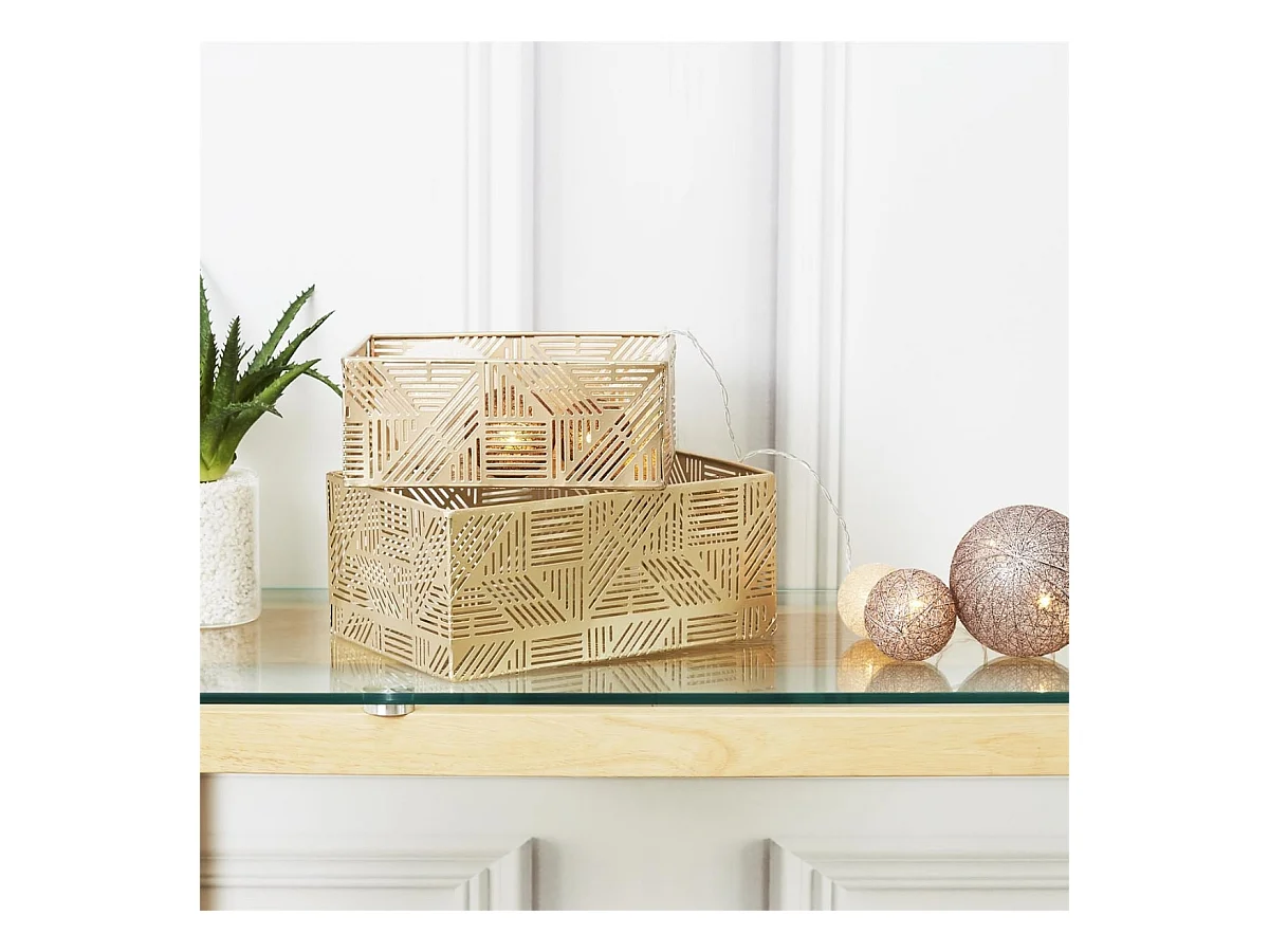 Lot de 2 Paniers de Rangements en Métal Doré Ajouré Motif Géométrique - GLOWUP