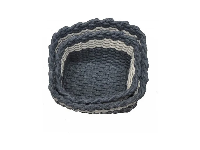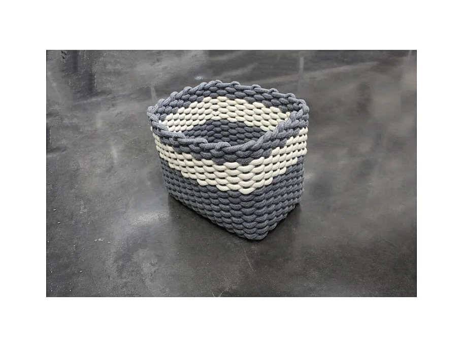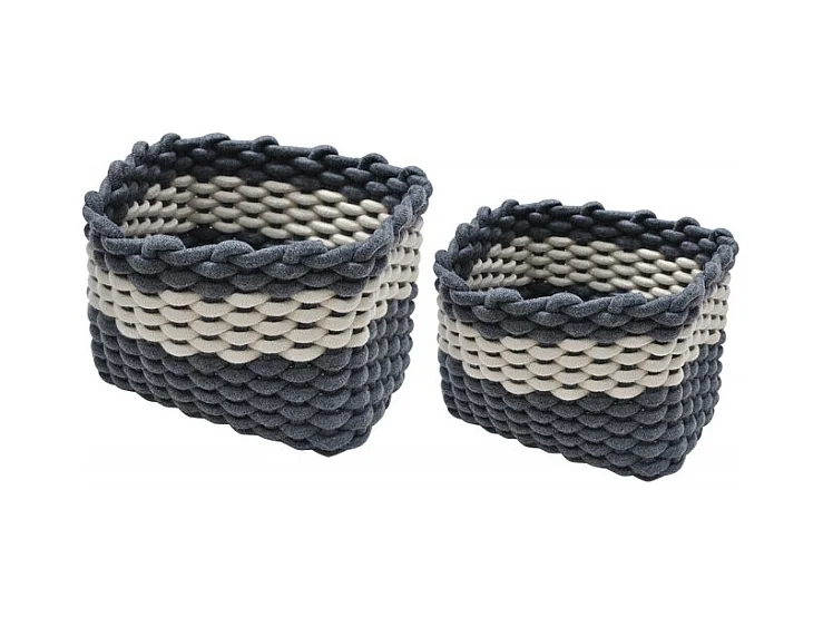 Set de 2 paniers rectangulaires en corde tressée gris et blanc - DUO