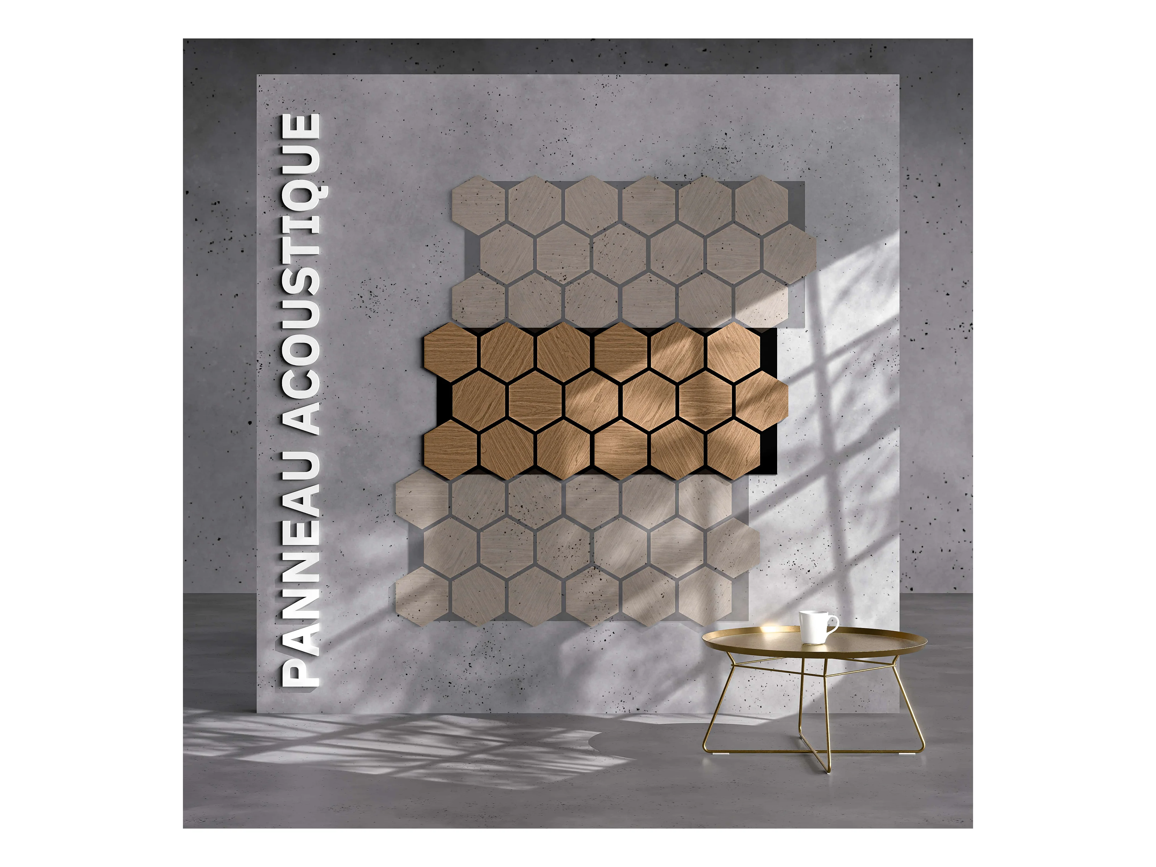 Lot de 2 Panneaux Hexagonaux H. 76 cm L. 62 cm - Chêne Brun Feutre Noir