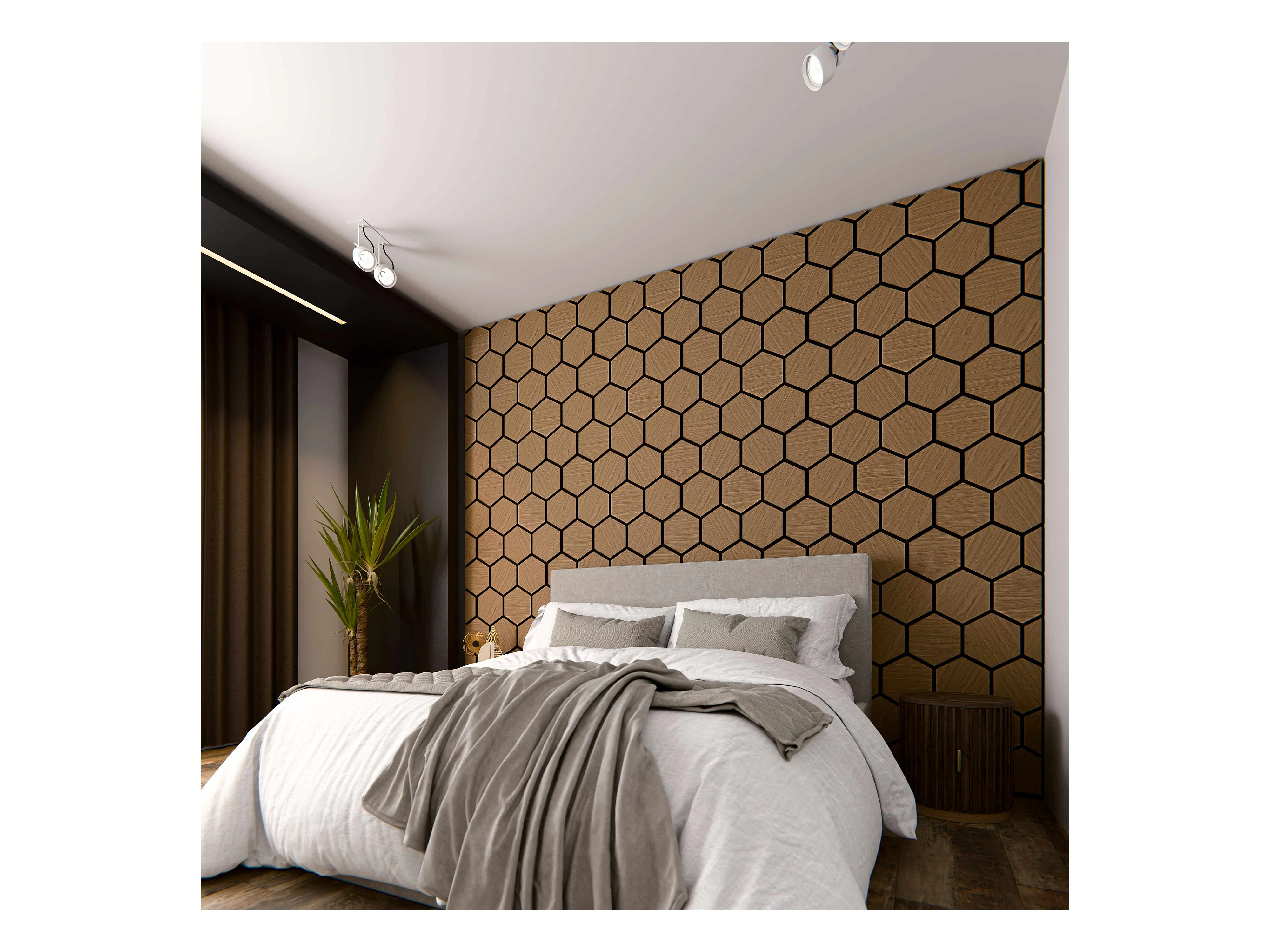 Lot de 2 Panneaux Hexagonaux H. 76 cm L. 62 cm - Chêne Noir Feutre Noir