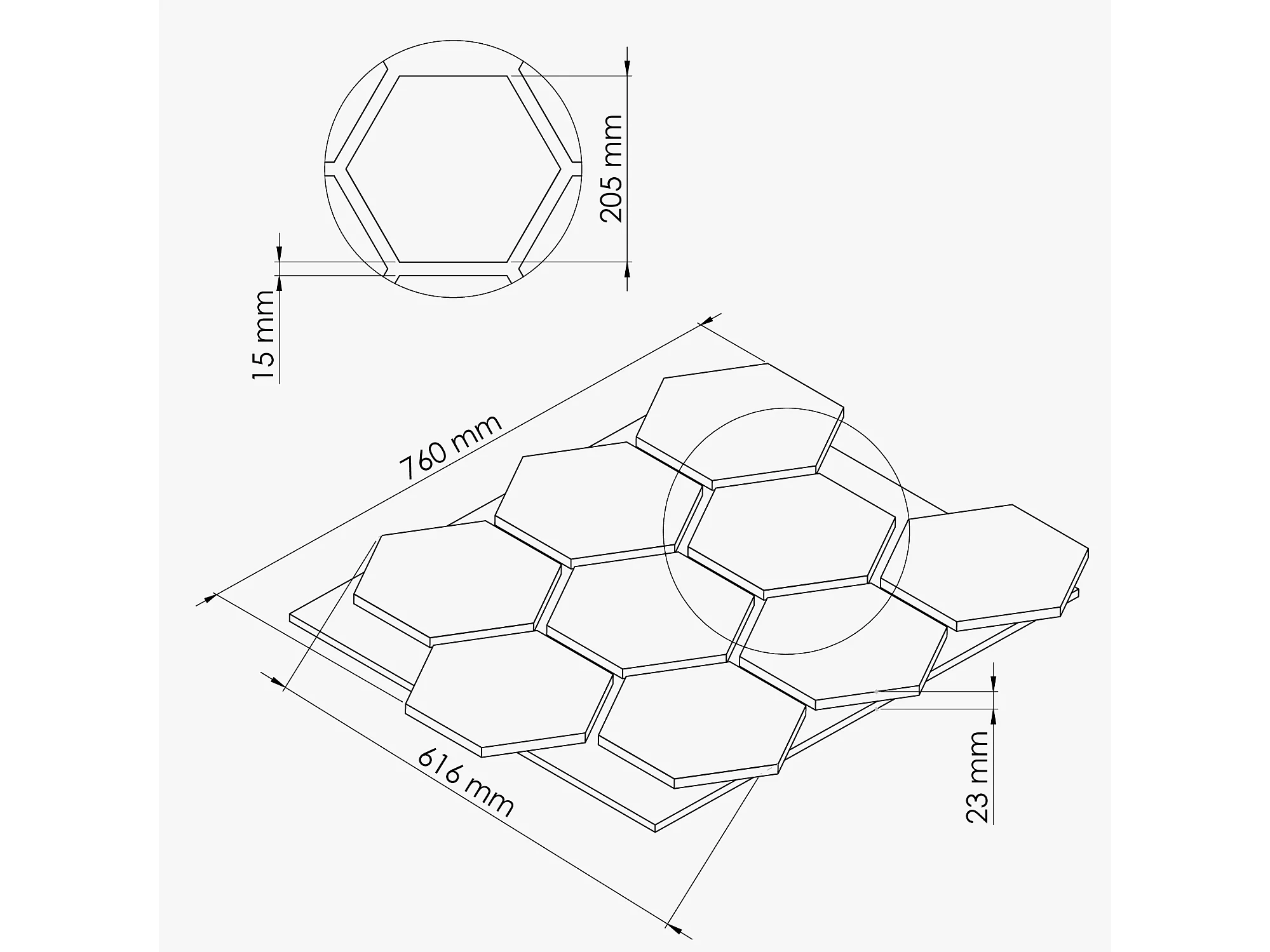 Lot de 2 Panneaux Hexagonaux H. 76 cm L. 62 cm - Chêne Feutre Noir