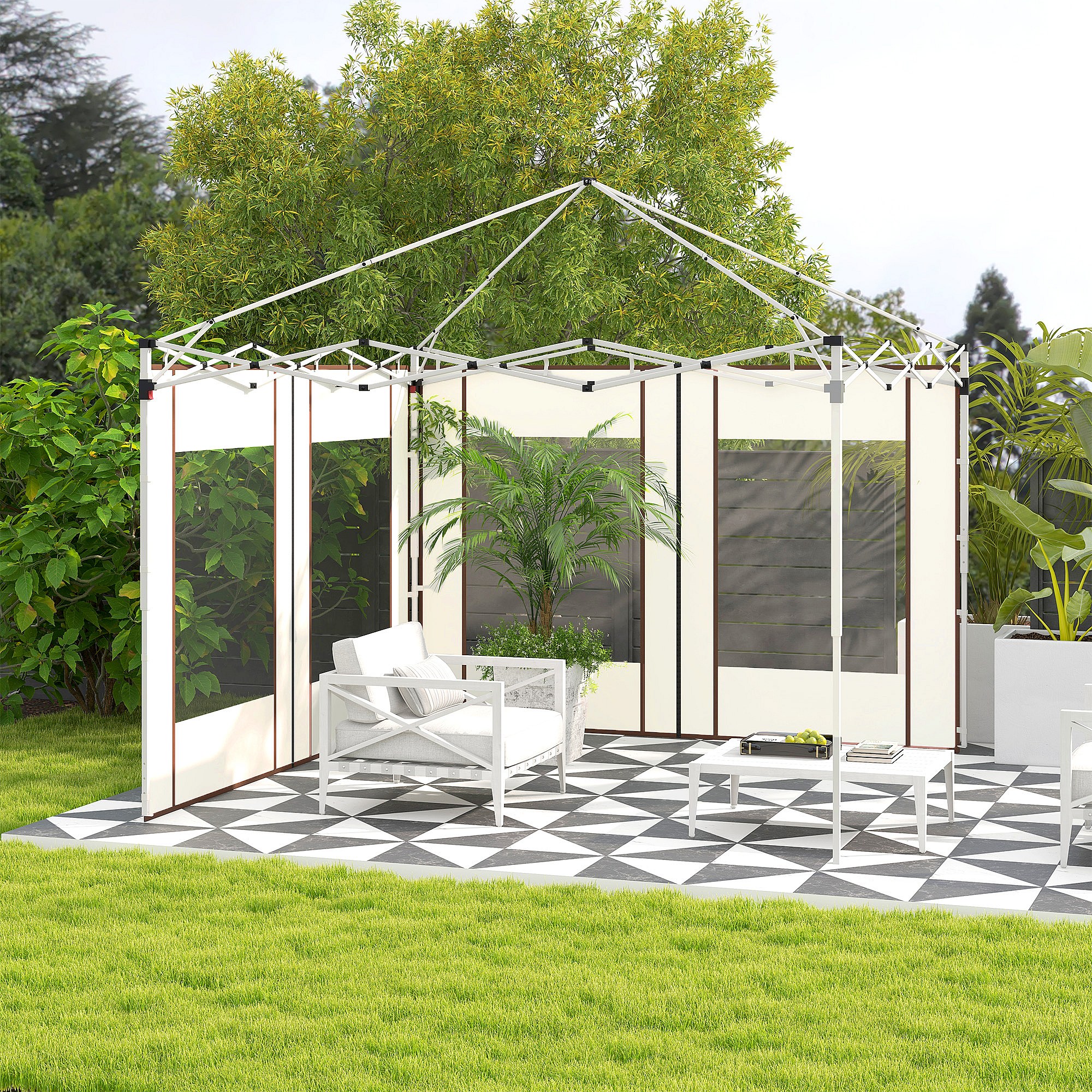 Lot de 2 panneaux latéraux barnum tonnelle 6x3 m ou 3x3 m fenêtres oxford blanc