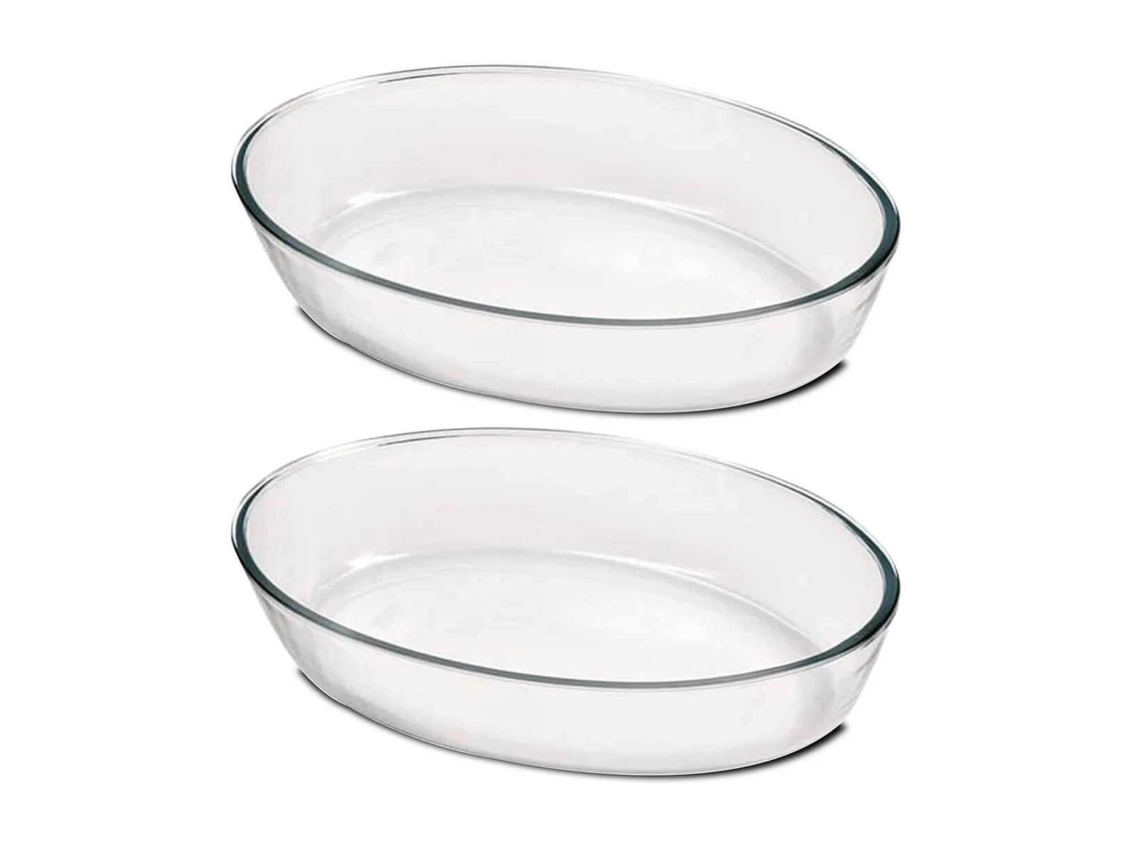 Lot de 2 plat à four oval avec anses, moule de cuisson en verre, capacité 3.2 L - Longueur 35.8 x Profondeur 24.2 x Hauteur 7 cm
