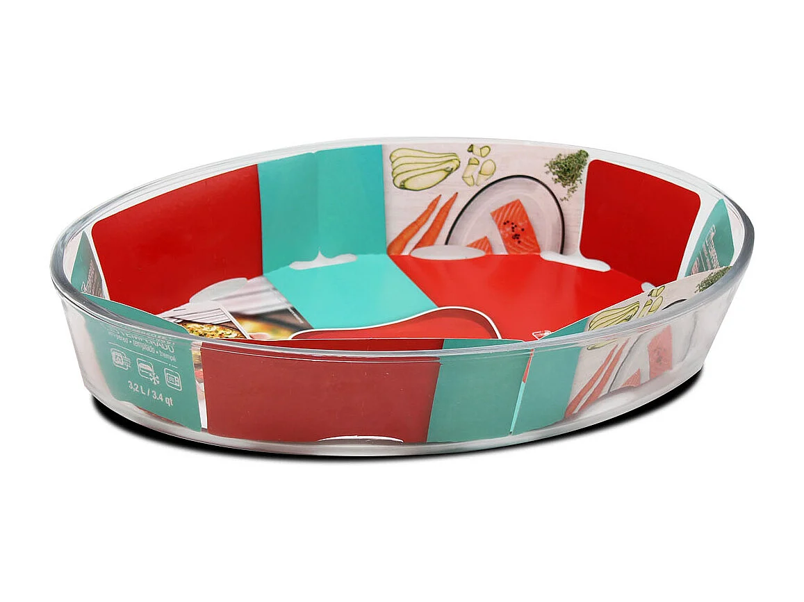 Plat à four oval avec anses, moule de cuisson en verre, capacité 3.2 L - Longueur 35.8 x Profondeur 24.2 x Hauteur 7 cm