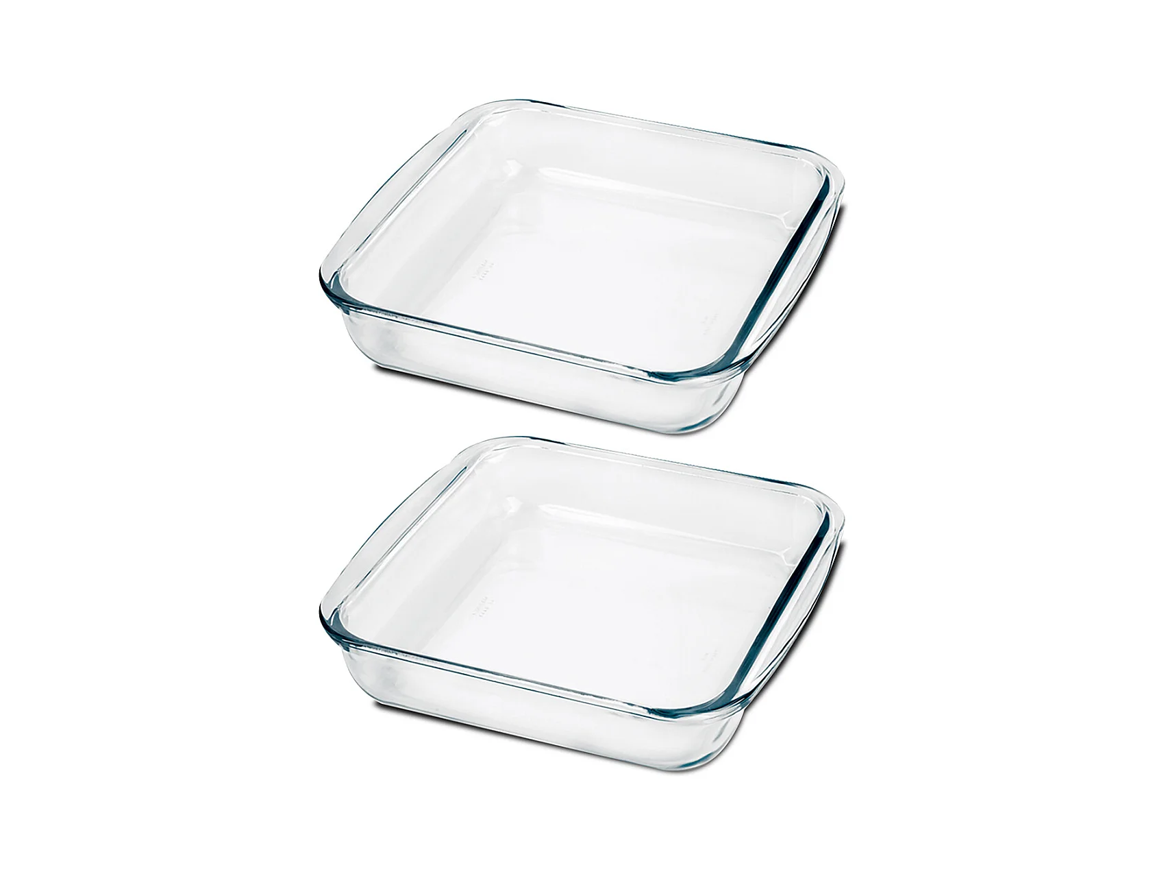 Lot de 2 plat à four carré, plat à tarte, moule de cuisson en verre, capacité 1.8 L - Longueur 24.8 x Profondeur 22.2 x Hauteur 5.2 cm