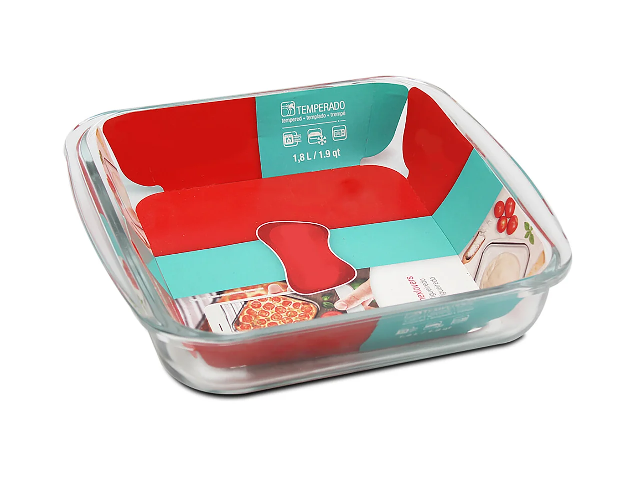 Plat à four carré, plat à tarte, moule de cuisson en verre, capacité 1.8 L - Longueur 24.8 x Profondeur 22.2 x Hauteur 5.2 cm