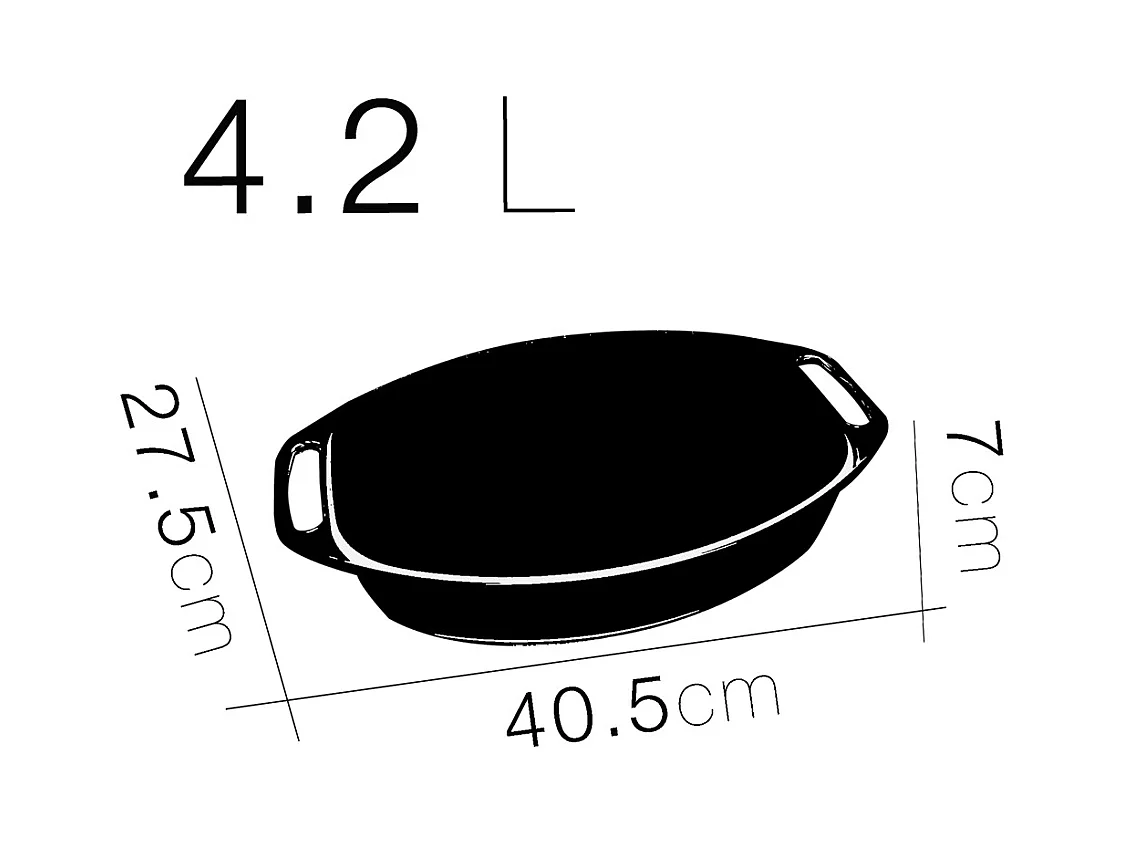 Plat à four oval avec anses, moule de cuisson en verre, capacité 4.2 L - Longueur 40.5 x Profondeur 27.5 x Hauteur 7 cm