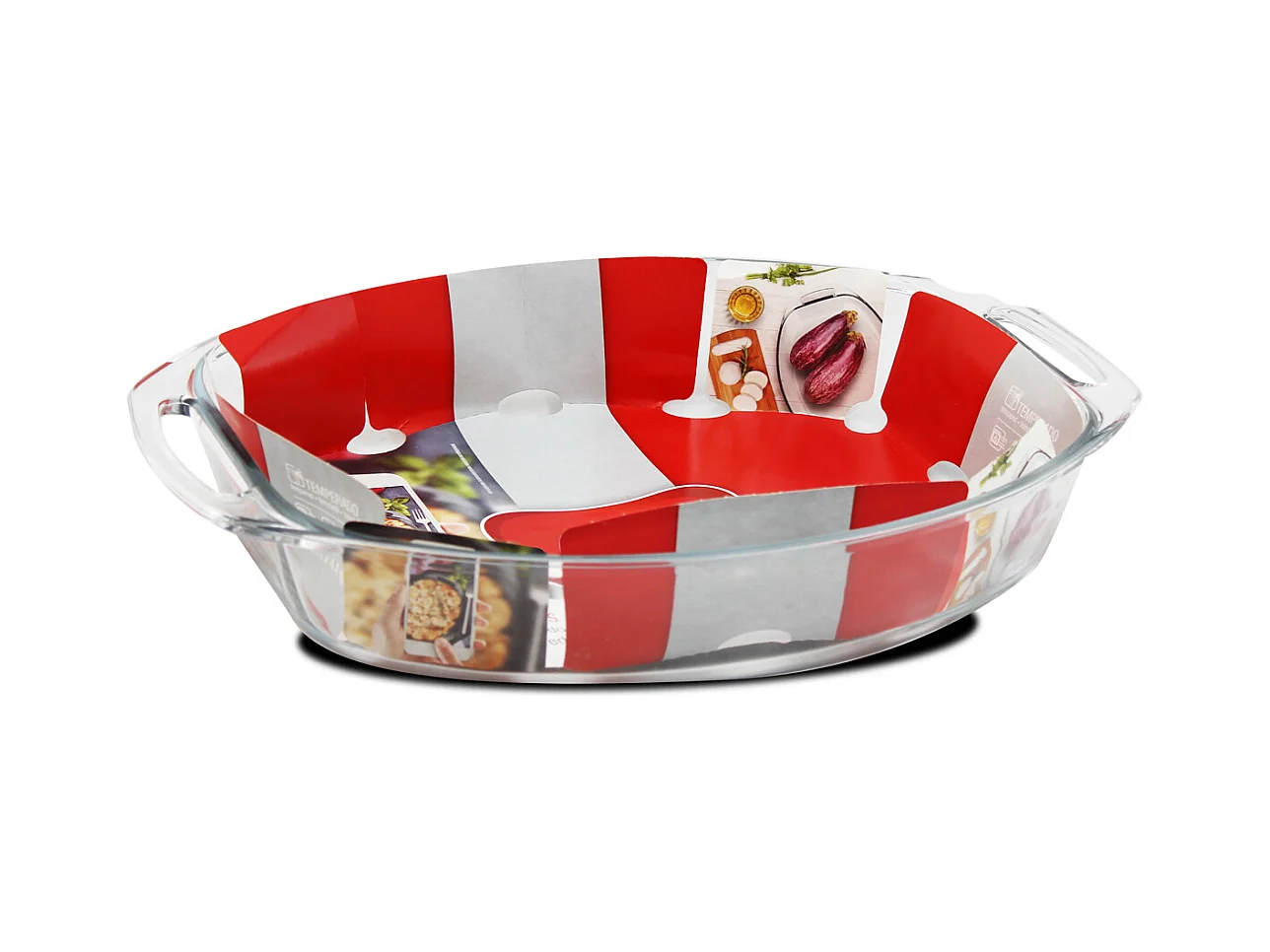 Plat à four rond avec anses, moule de cuisson en verre, capacité 2.4 L - Longueur 32.2 x Profondeur 26.3 x Hauteur 5.8 cm