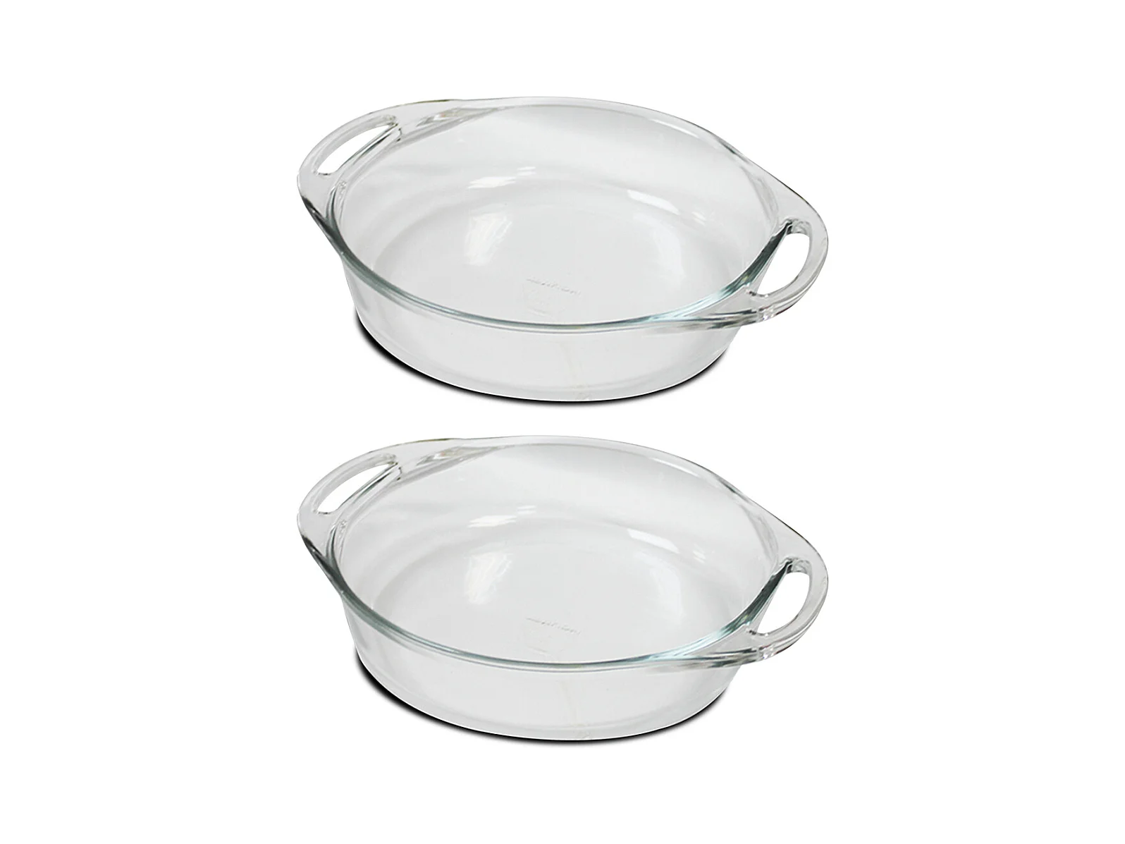 Lot de 2 plat à four rond avec anses, moule de cuisson en verre, capacité 2.4 L - Longueur 32.2 x Profondeur 26.3 x Hauteur 5.8 cm