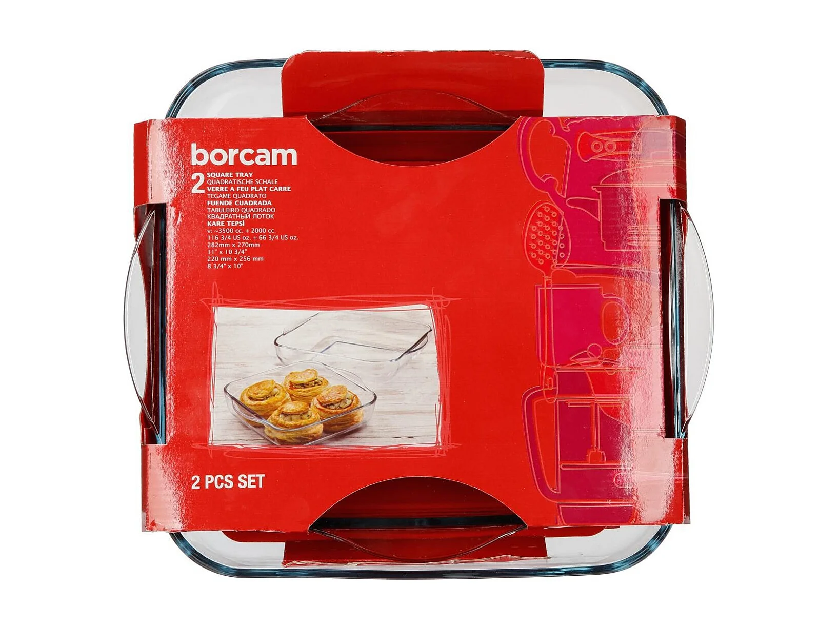 Lot de 2 Plats Culinaires en Verre "Carrées" 28cm Transparent