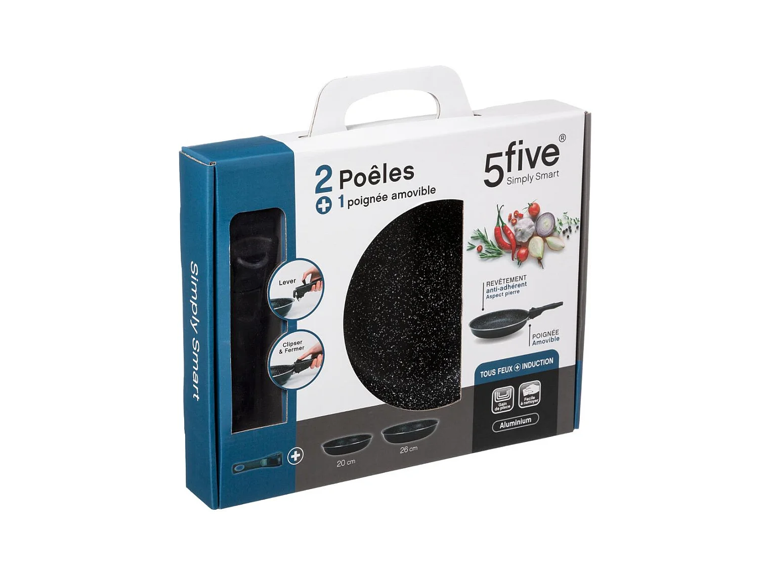 Set de 2 Poêles & 1 Poignée Amovible "Pierre" 26cm Noir