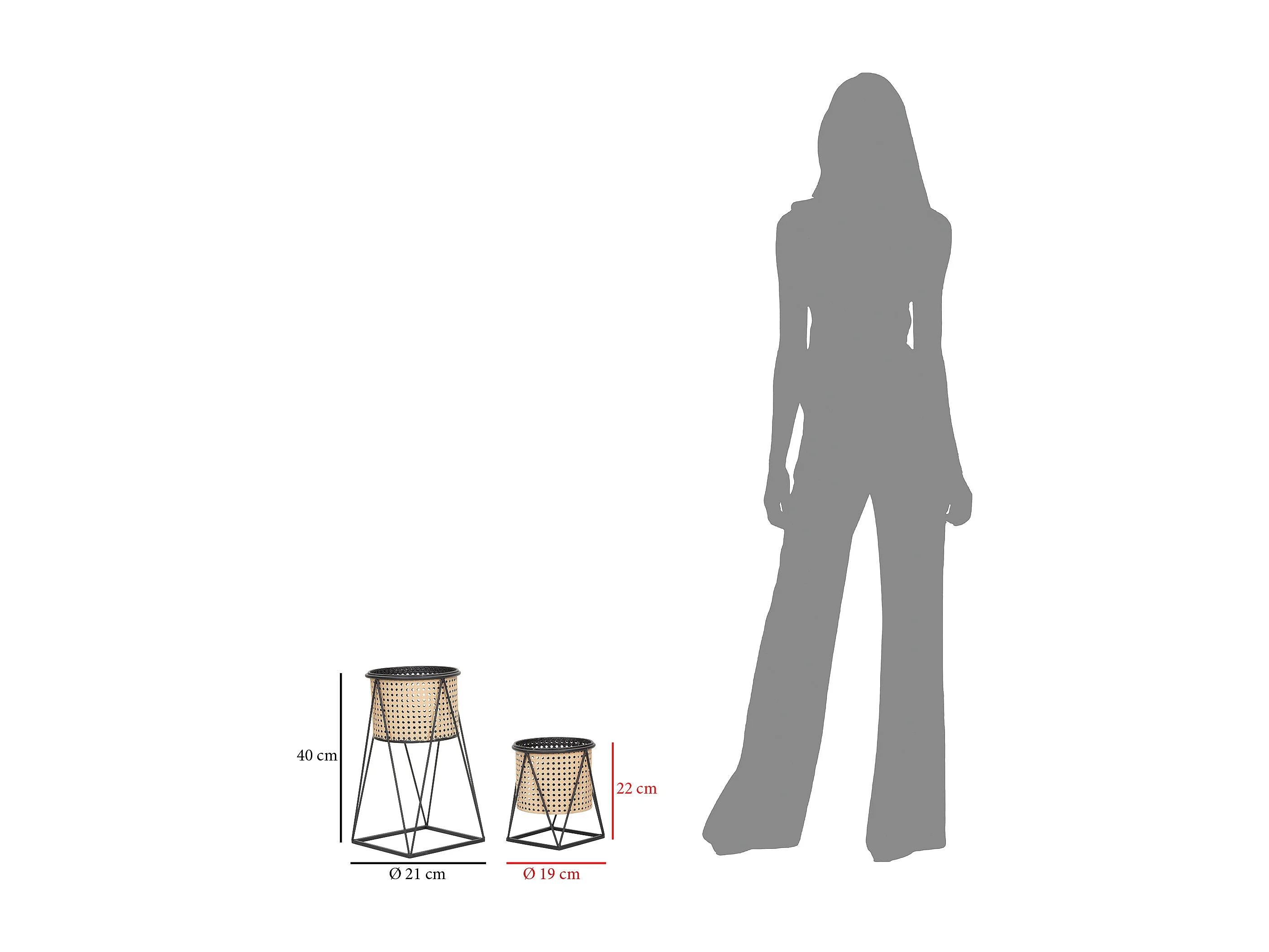 Lot de 2 Cache-Pots sur Pied "Osaka" 40cm Noir & Naturel
