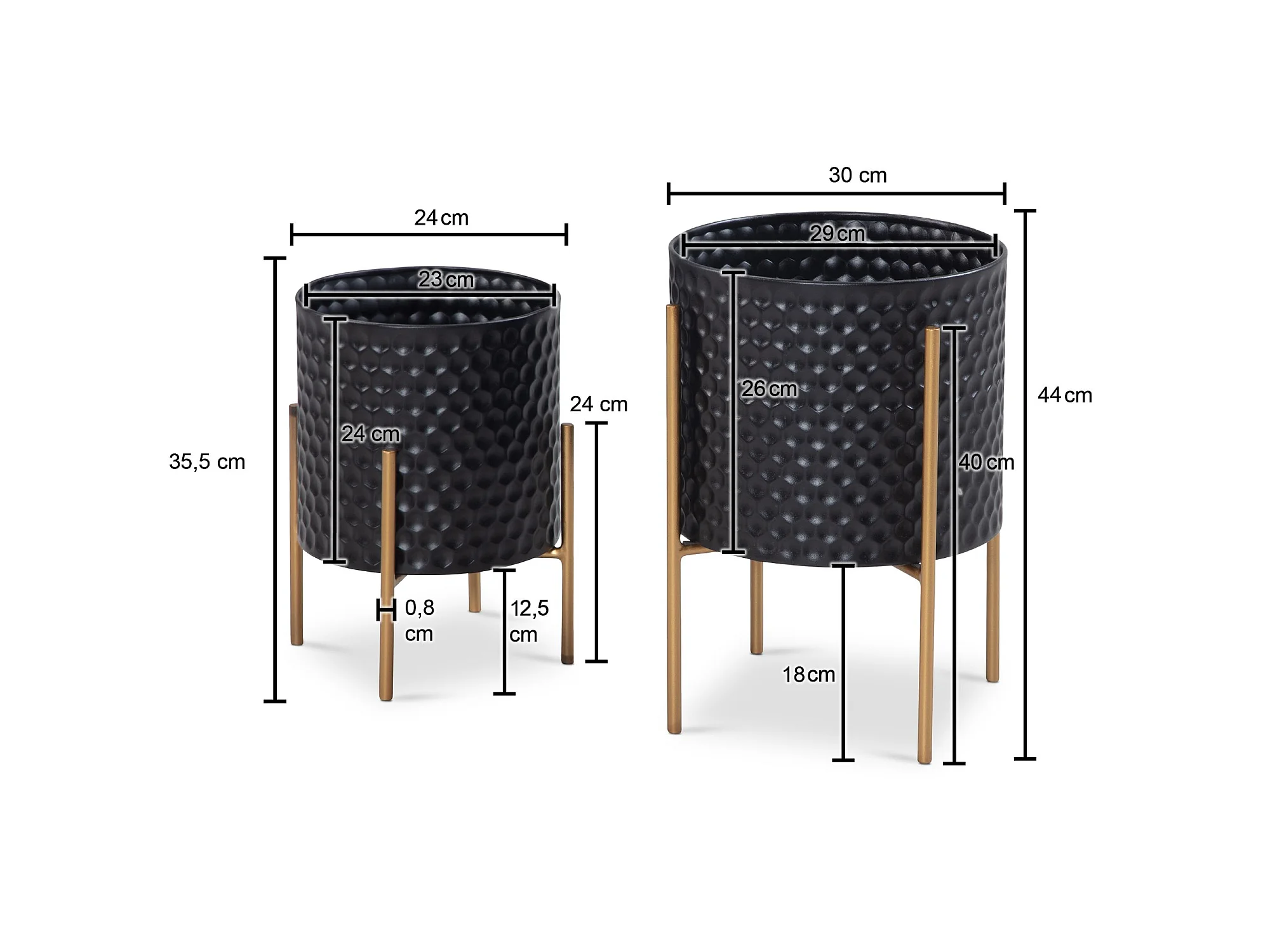 Lot de 2 Pots de Fleurs en Métal Massif Jardinière Noir Planteur Moderne