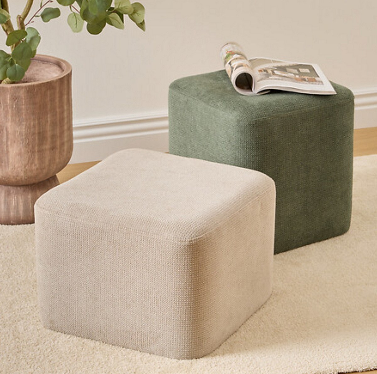 Lot de 2 Poufs carrés empilables coloris sable et vert - Longueur 41 x Profondeur 41 x Hauteur 42 cm