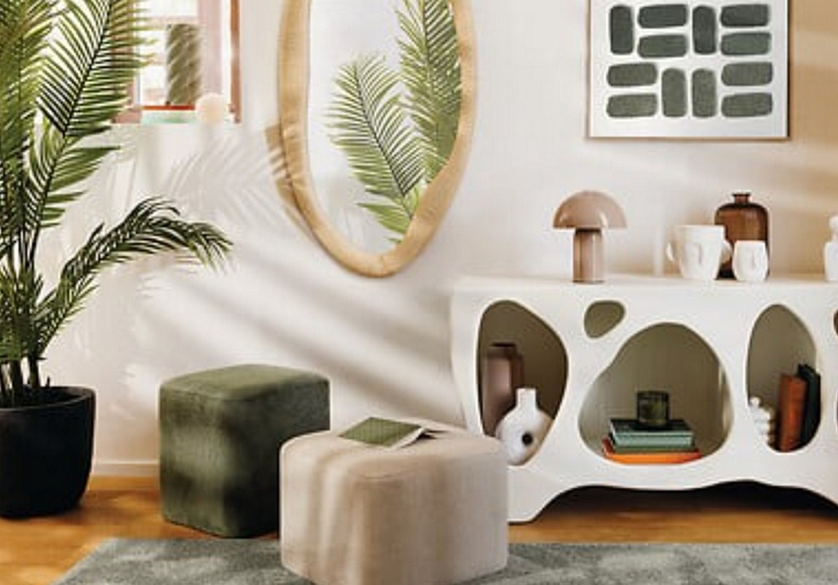 Pouf Jin D38 cm tissu vert cèdre Atmosphera