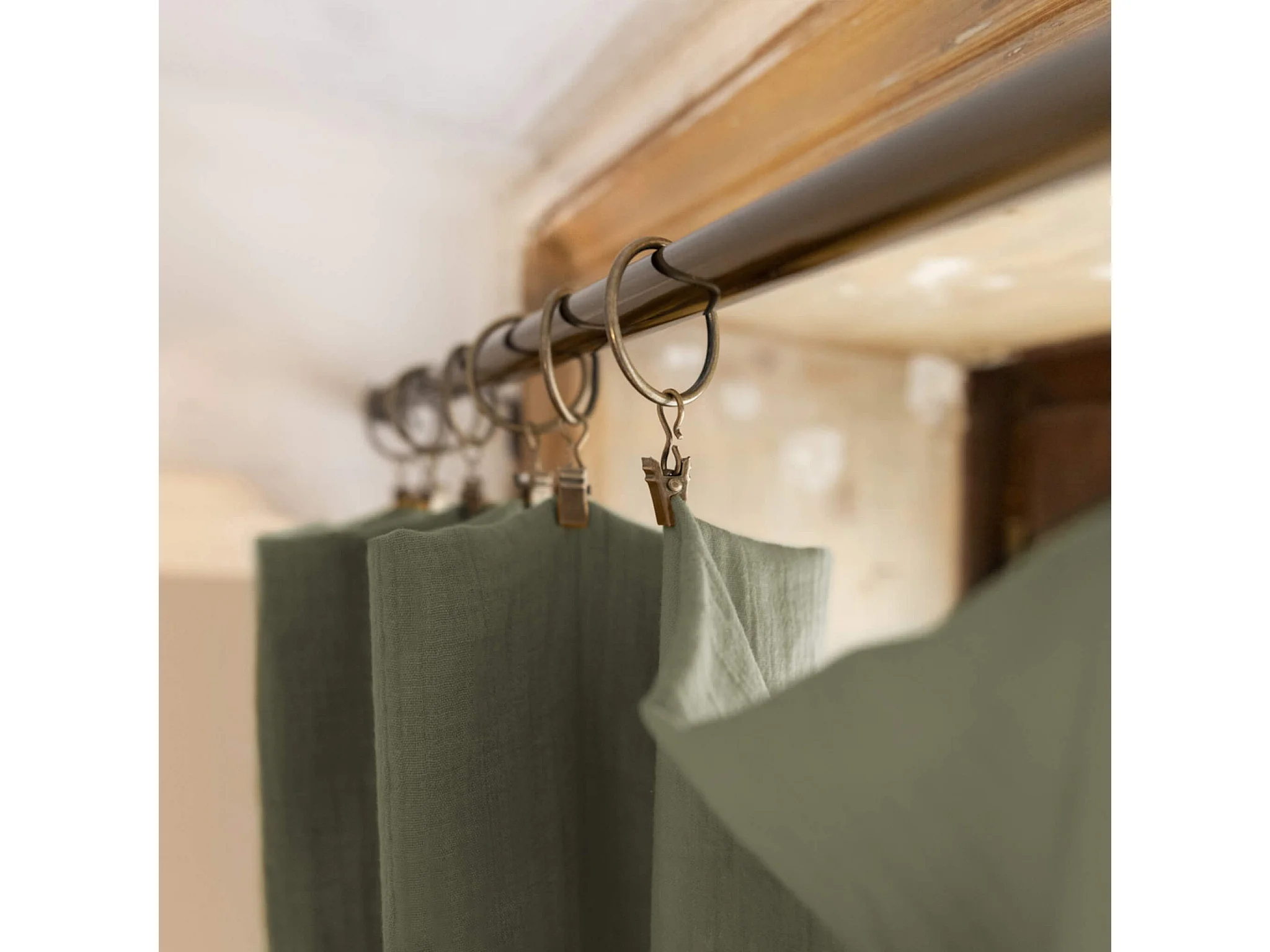 OUREA - Rideau Ajustable 140x300 cm Gaze de Coton Romarin + 8 Anneaux Pince