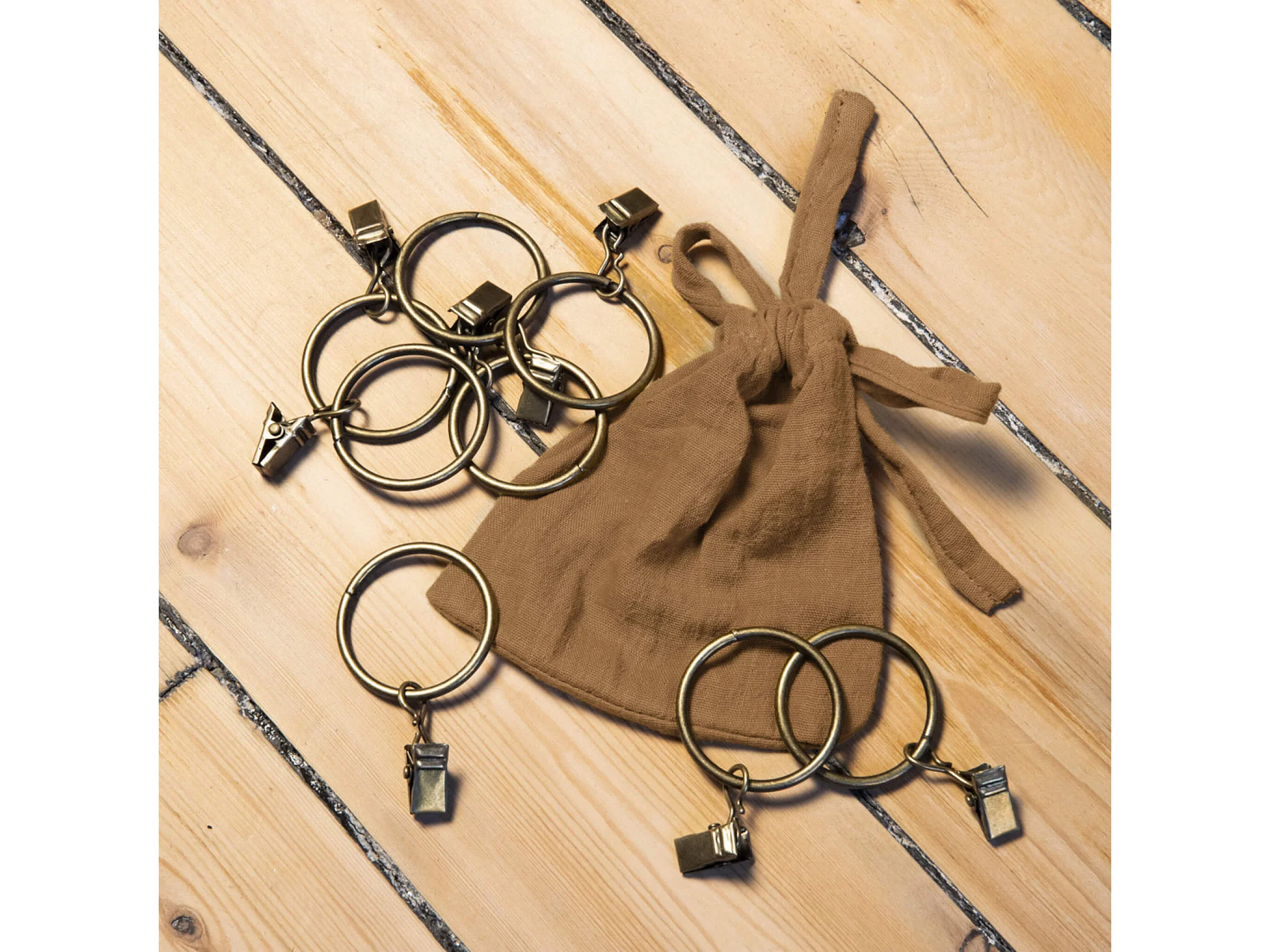 OUREA - Rideau Ajustable 140x300 cm Gaze de Coton Camel + 8 Anneaux Pince