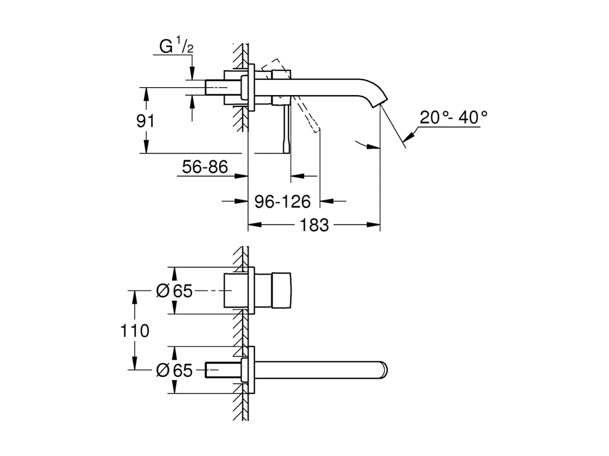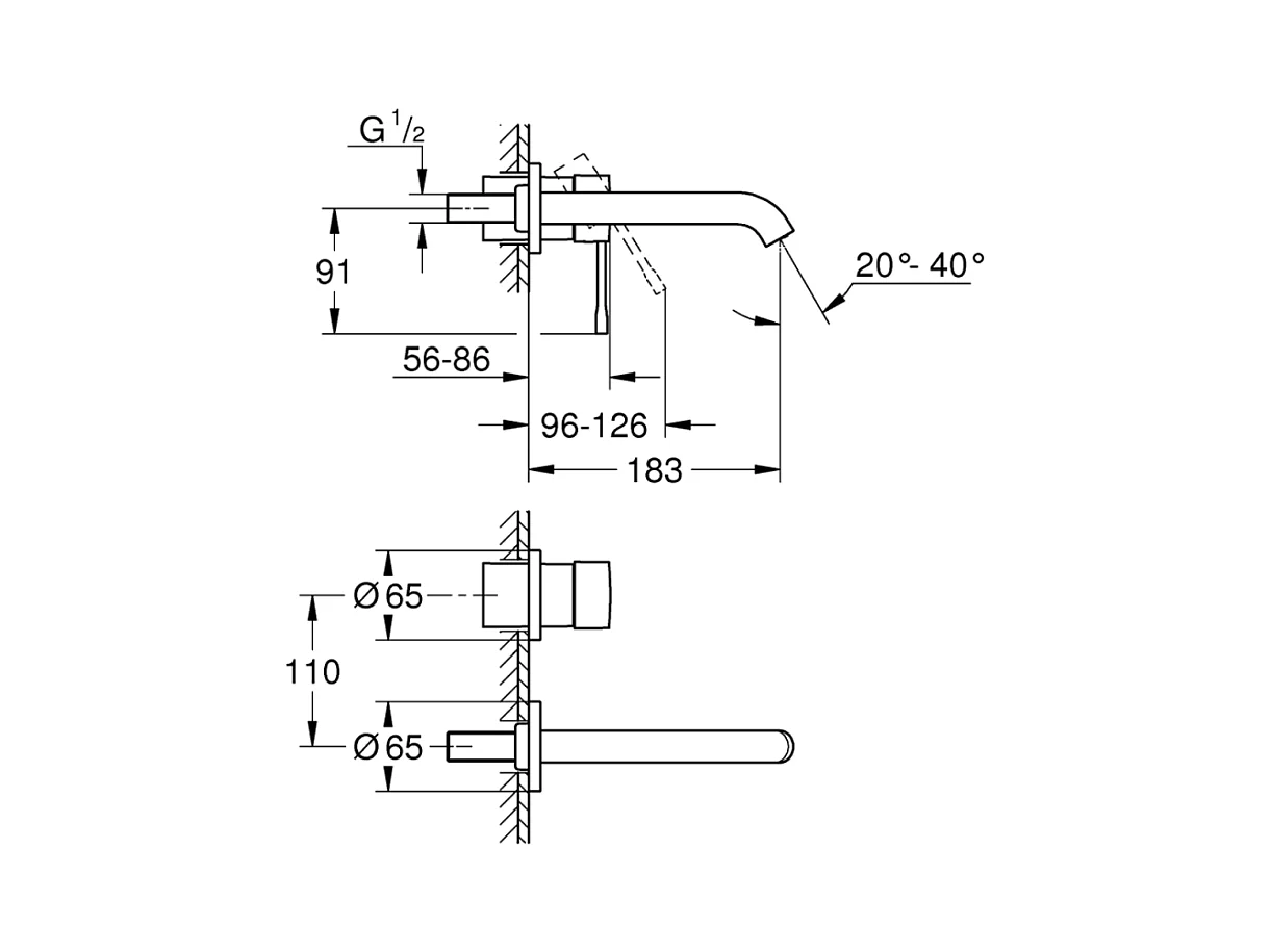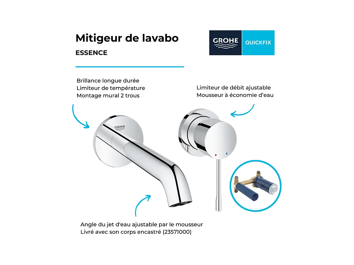 Lot de 2 robinets lavabo muraux GROHE Essence 2 trous taille M chromé