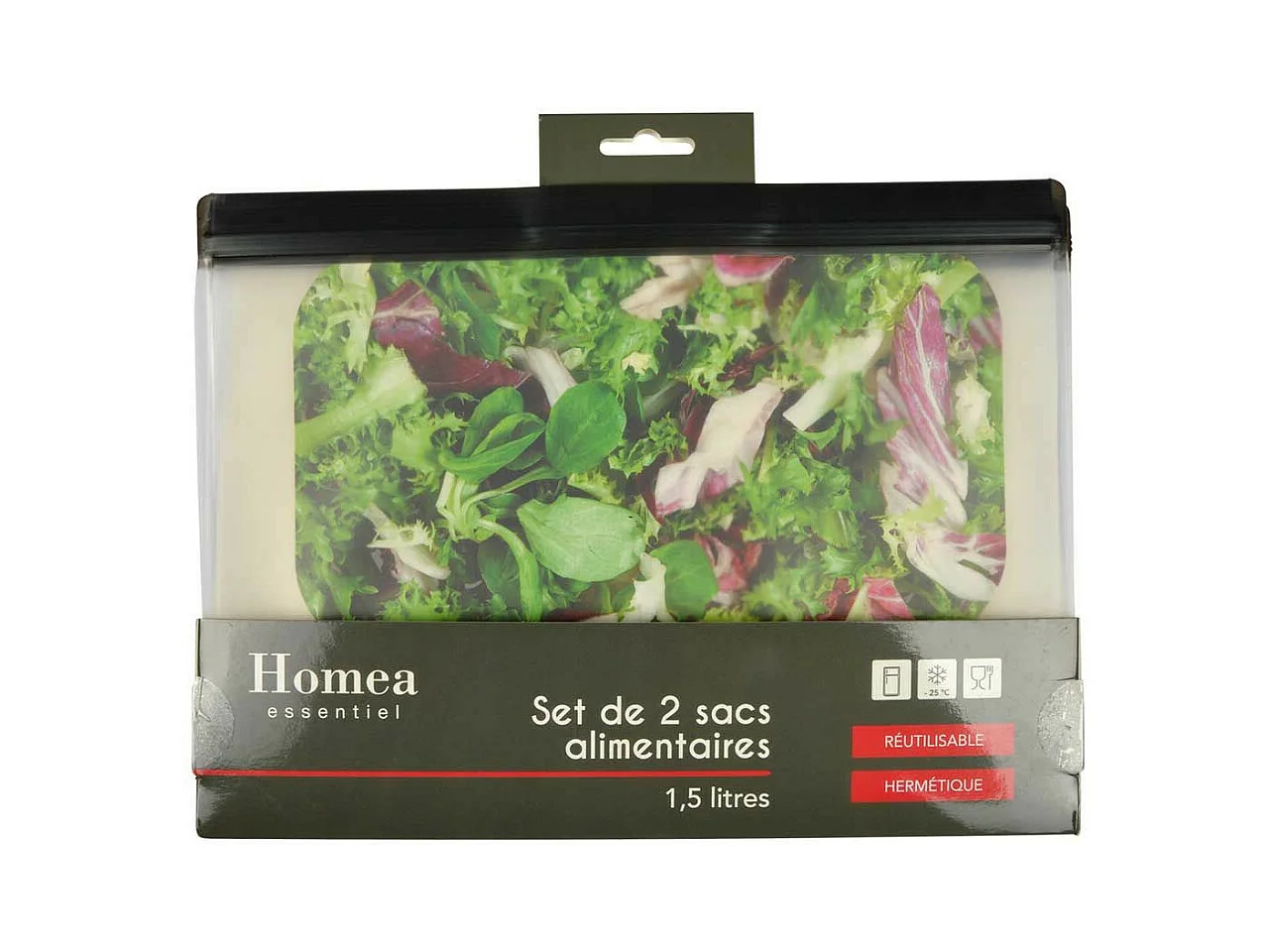 Lot de 2 Sacs Alimentaires "Réutilisables" 1,5L Transparent