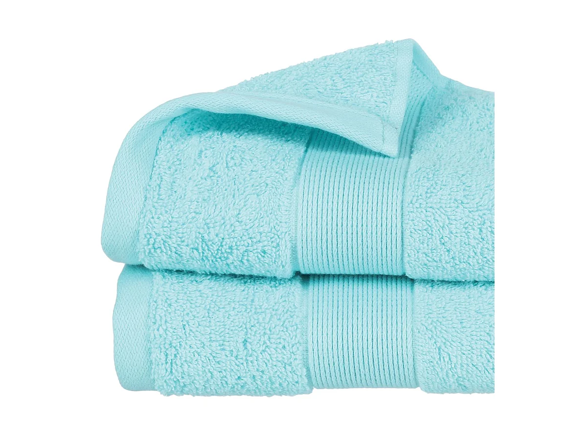Lot de 2 Serviettes de toilette en Coton Bleu aqua tissu éponge 50 x 90 cm