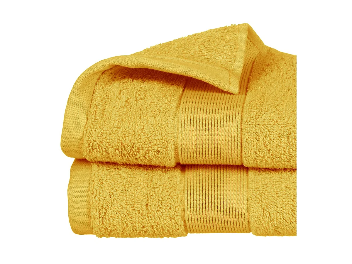 Lot de 2 Serviettes de toilette en Coton Jaune Ocre tissu éponge 50 x 90 cm