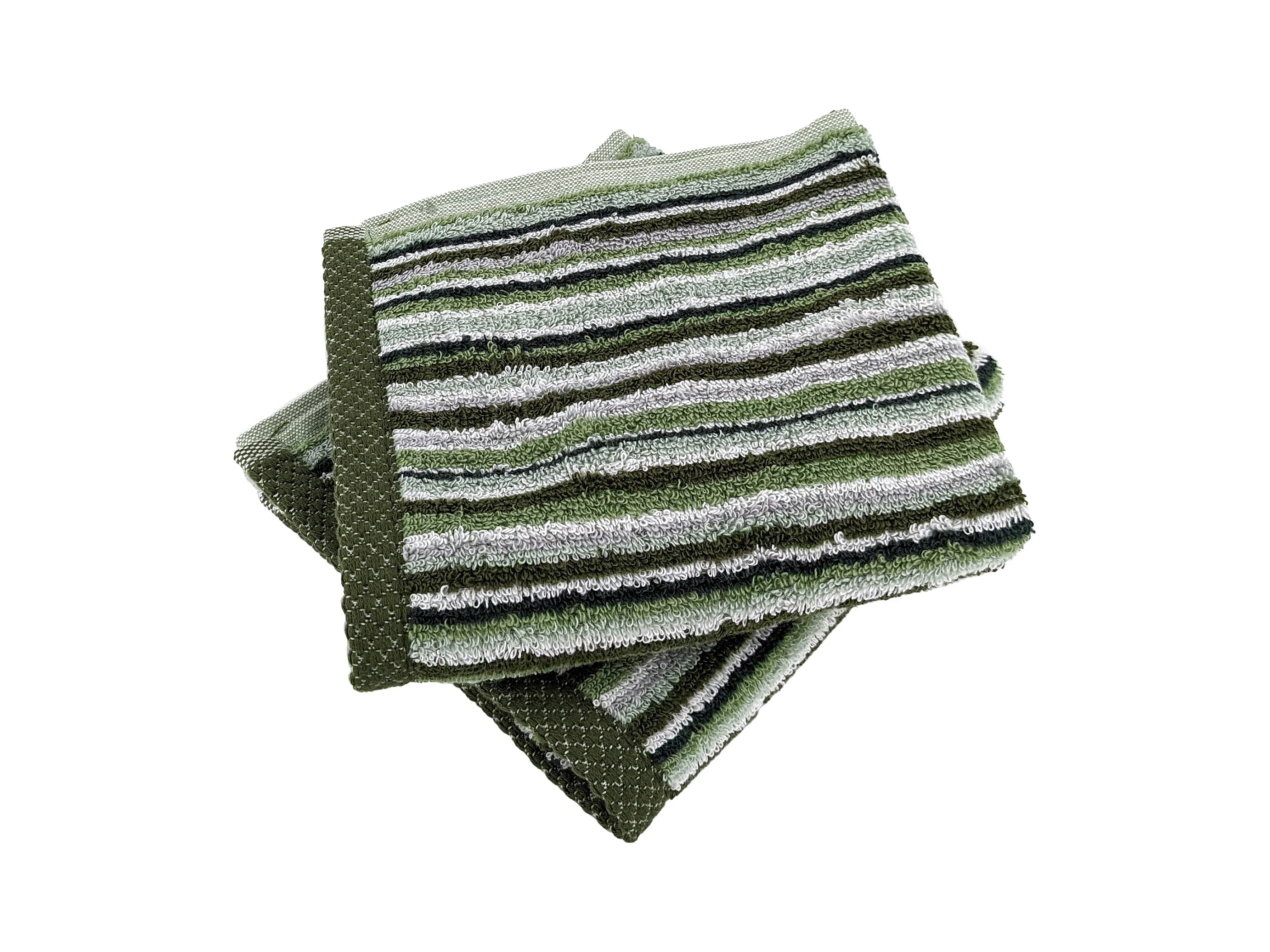 Lot de 2 serviettes invité coton 33x50cm PURE LIGHT à rayures vert