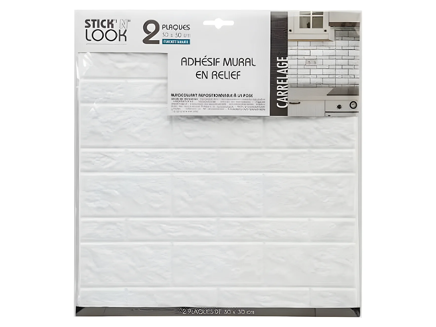 Lot de 2 Stickers Muraux "Pierre" 30x30cm Blanc