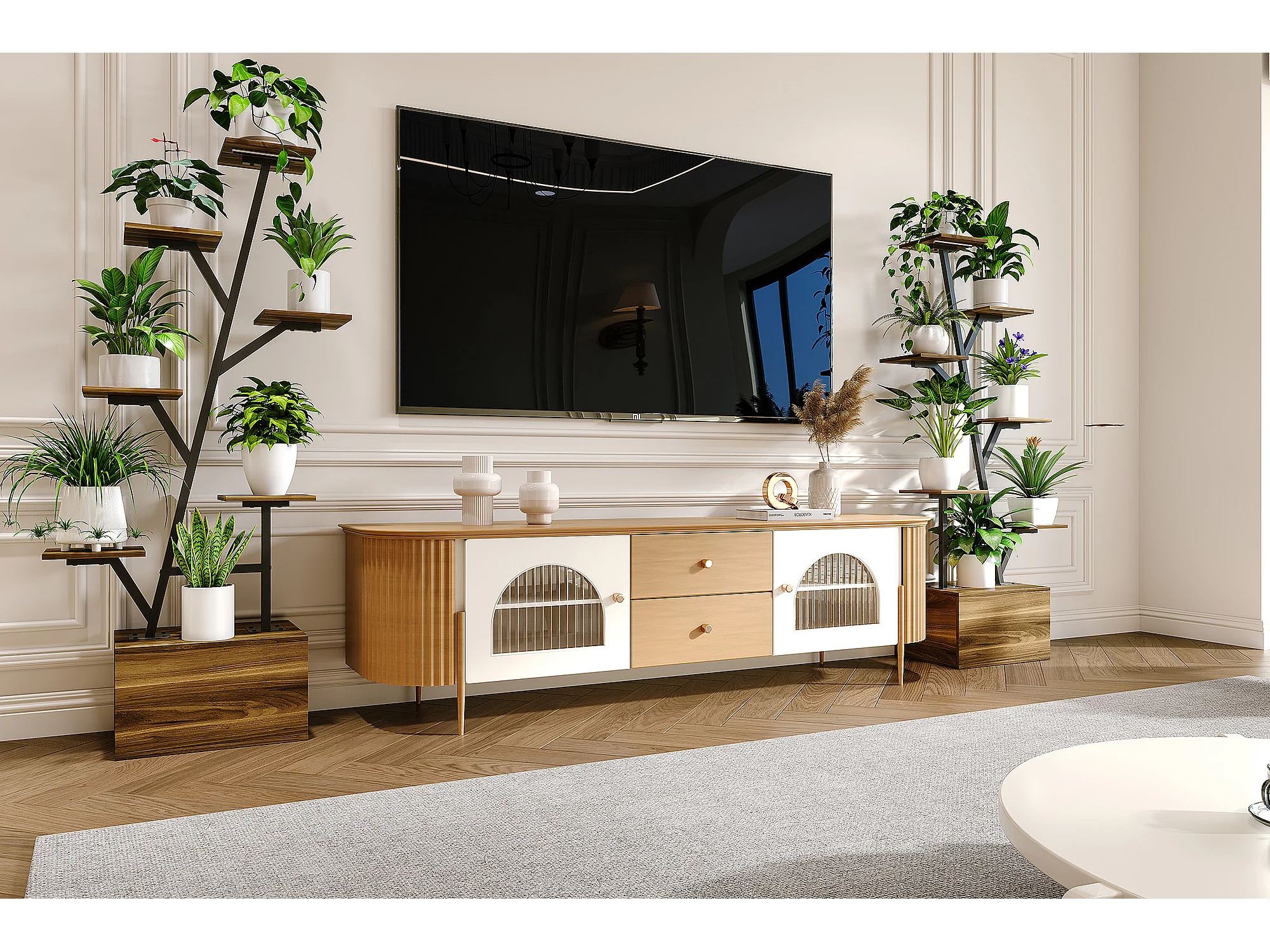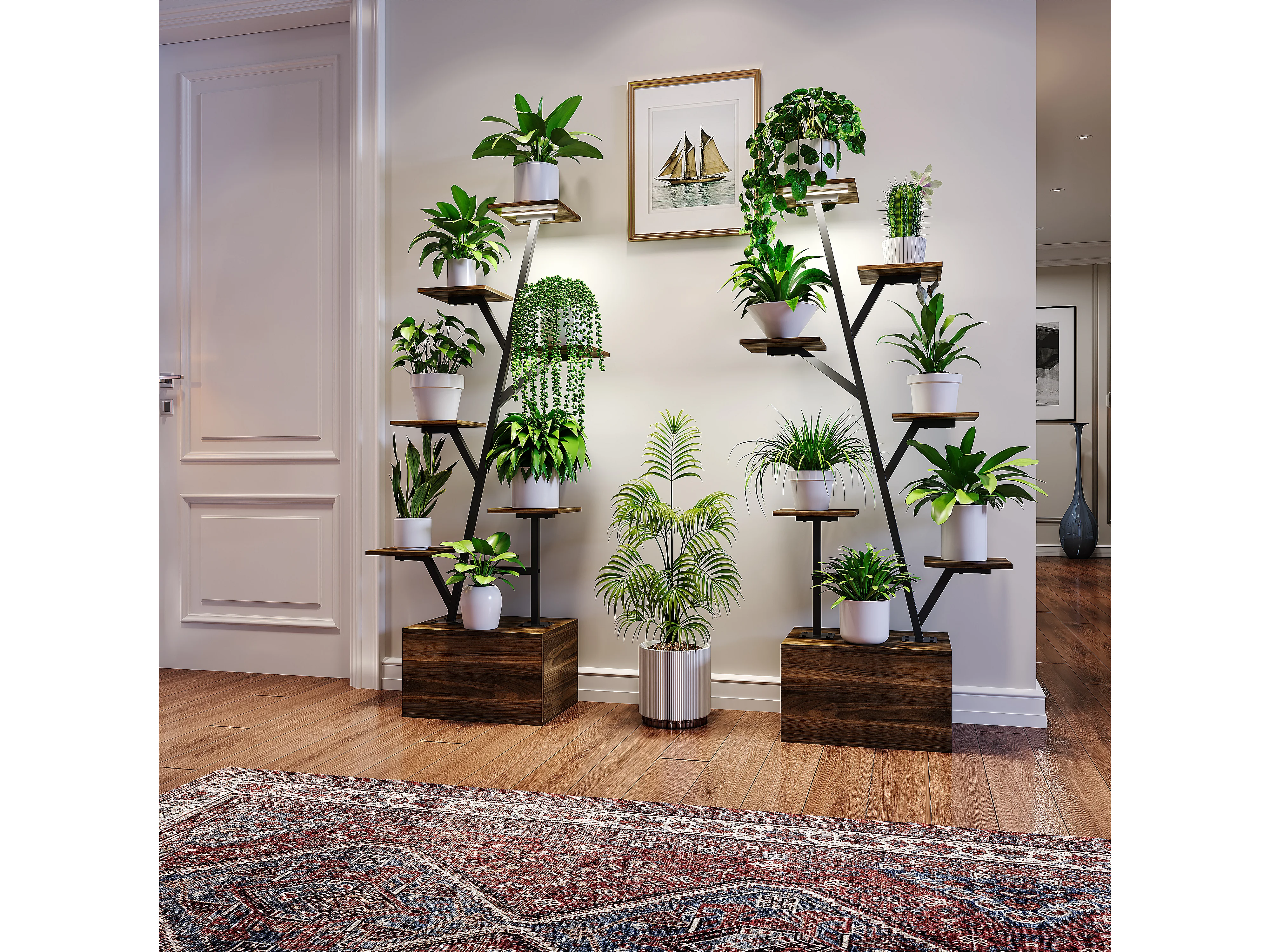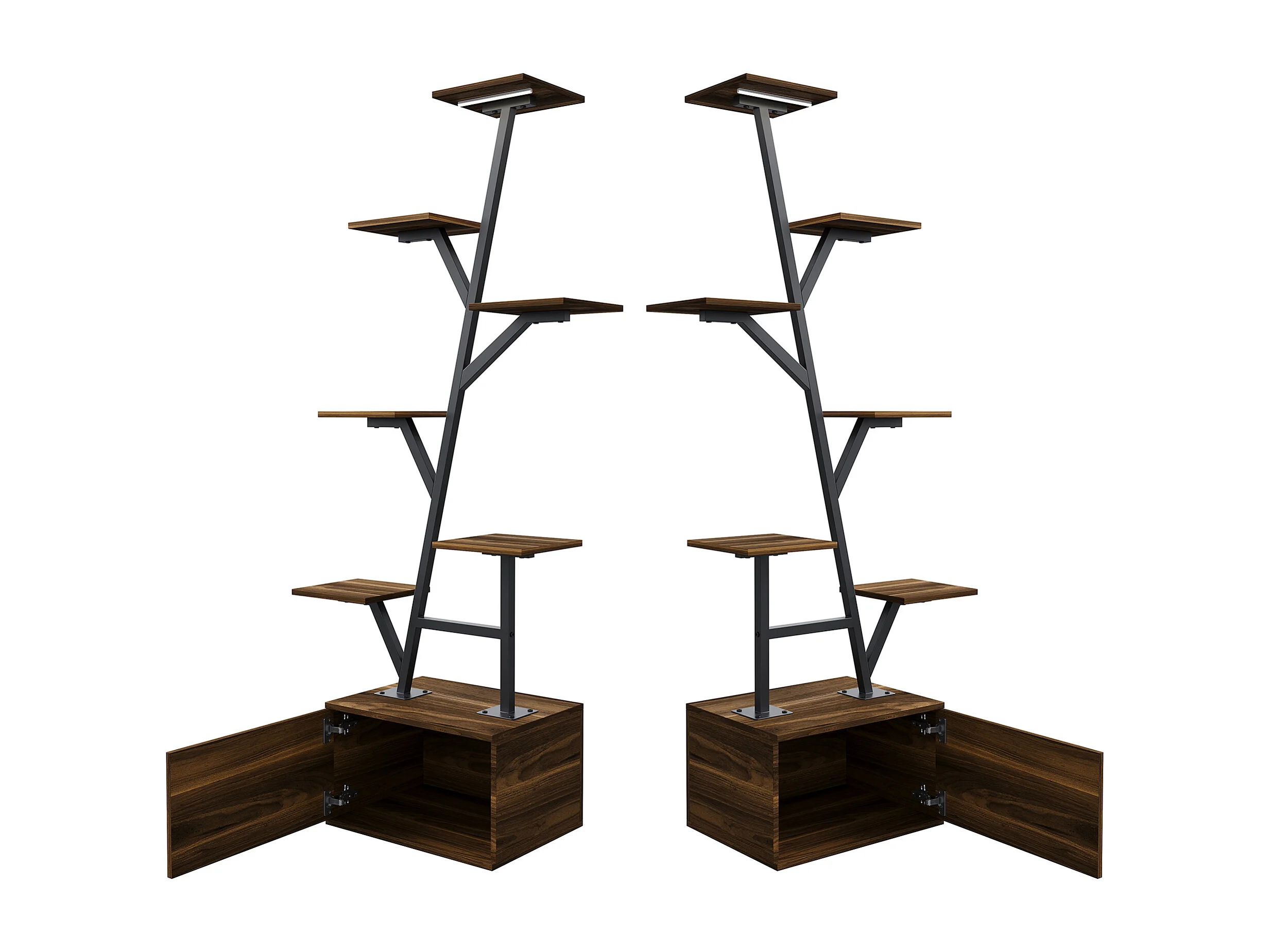 Lot de 2 supports pour plantes - avec lampe de croissance et armoire de rangement - 40 x 30 x 140 cm
