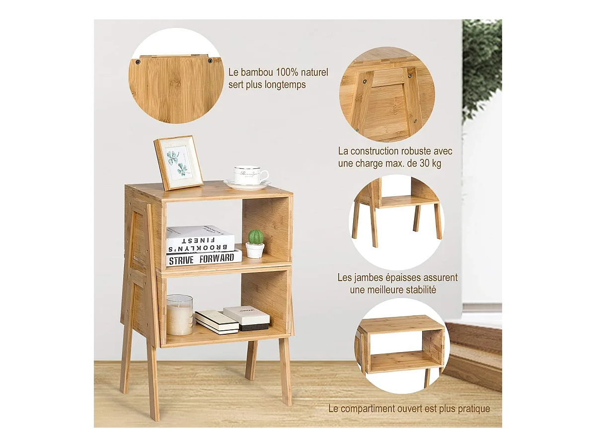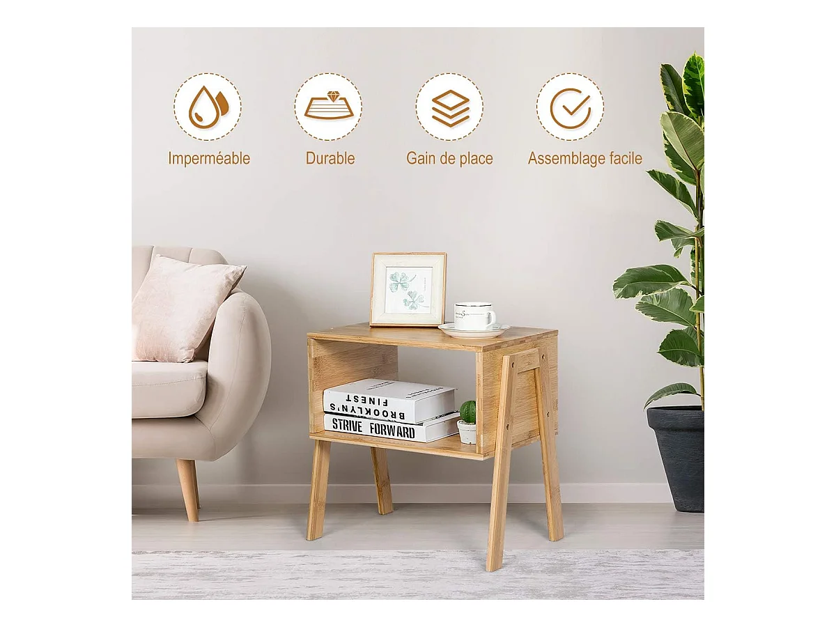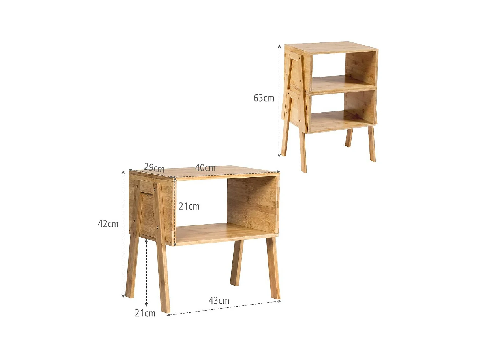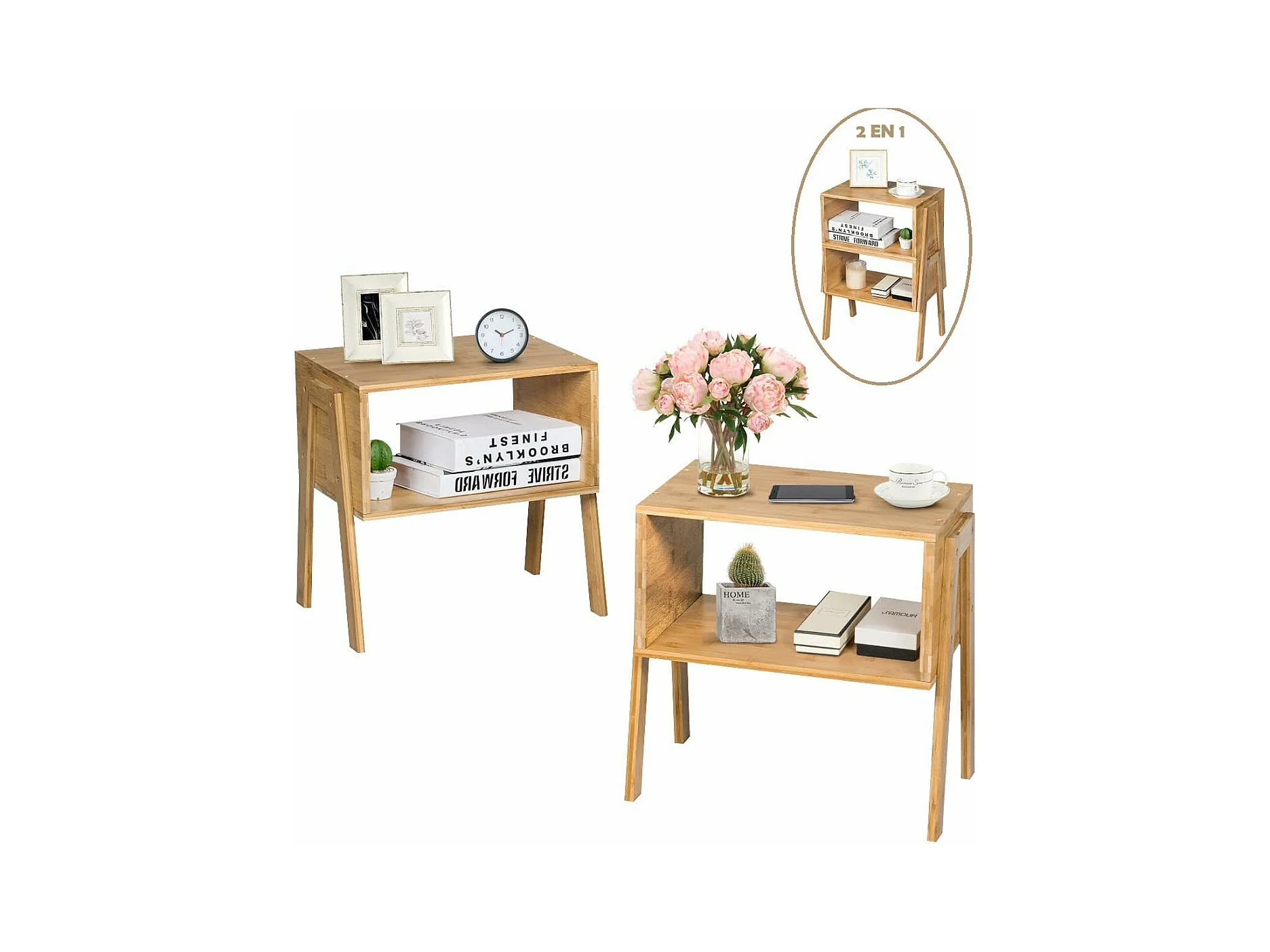 Lot de 2 Table de Chevet/Table d'Appoint avec fonction superposable-Bambou 100% naturel pour Salon, Chambre 43 x 29 x 42cm