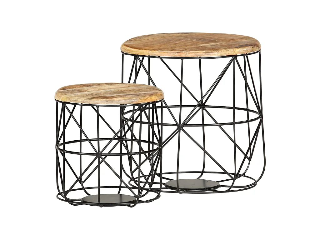 Tables basses 2 pcs Bois solide de manguier OFR60656 BonneVie Meuble