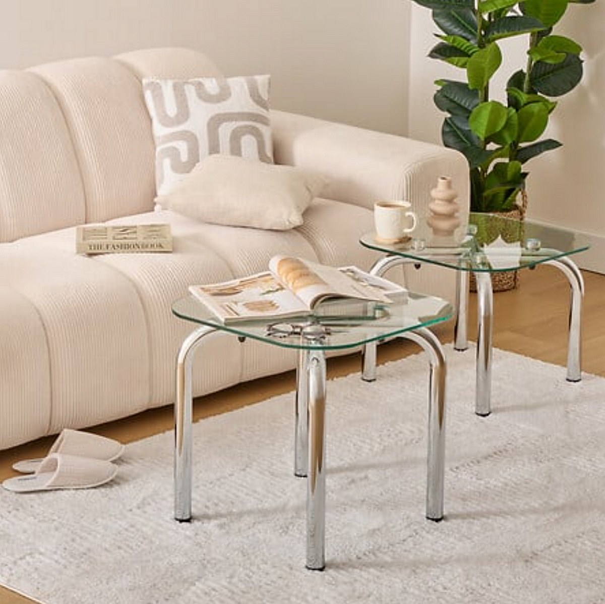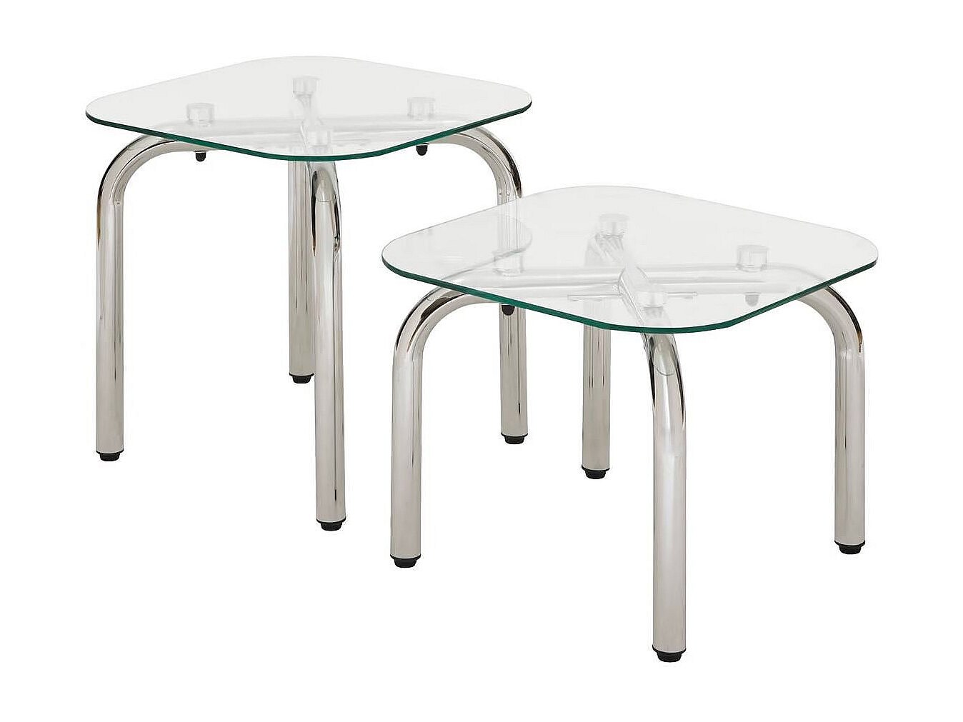 Lot de 2 tables basse en verre et métal chromé - Longueur 50 x largeur.50 x Hauteur 49,5/39,5 cm