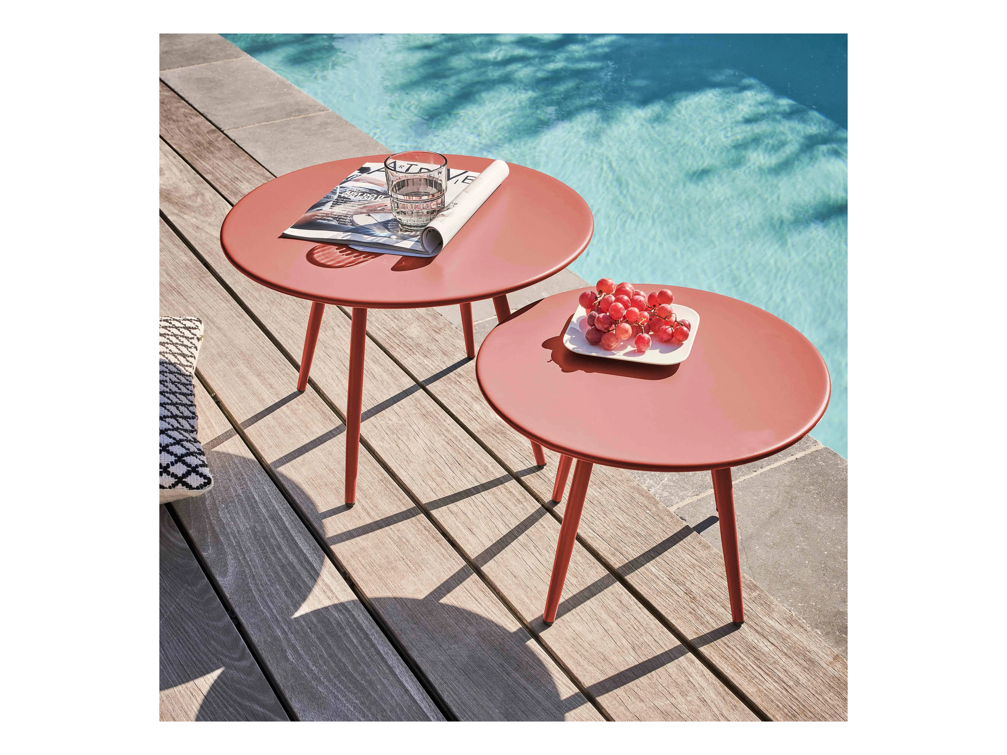 Lot de 2 tables basses de jardin en acier argile 50 cm - Palavas