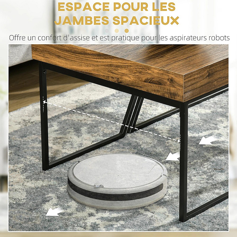 Lot de 2 tables basses design industriel géométrique effet bois et acier noir