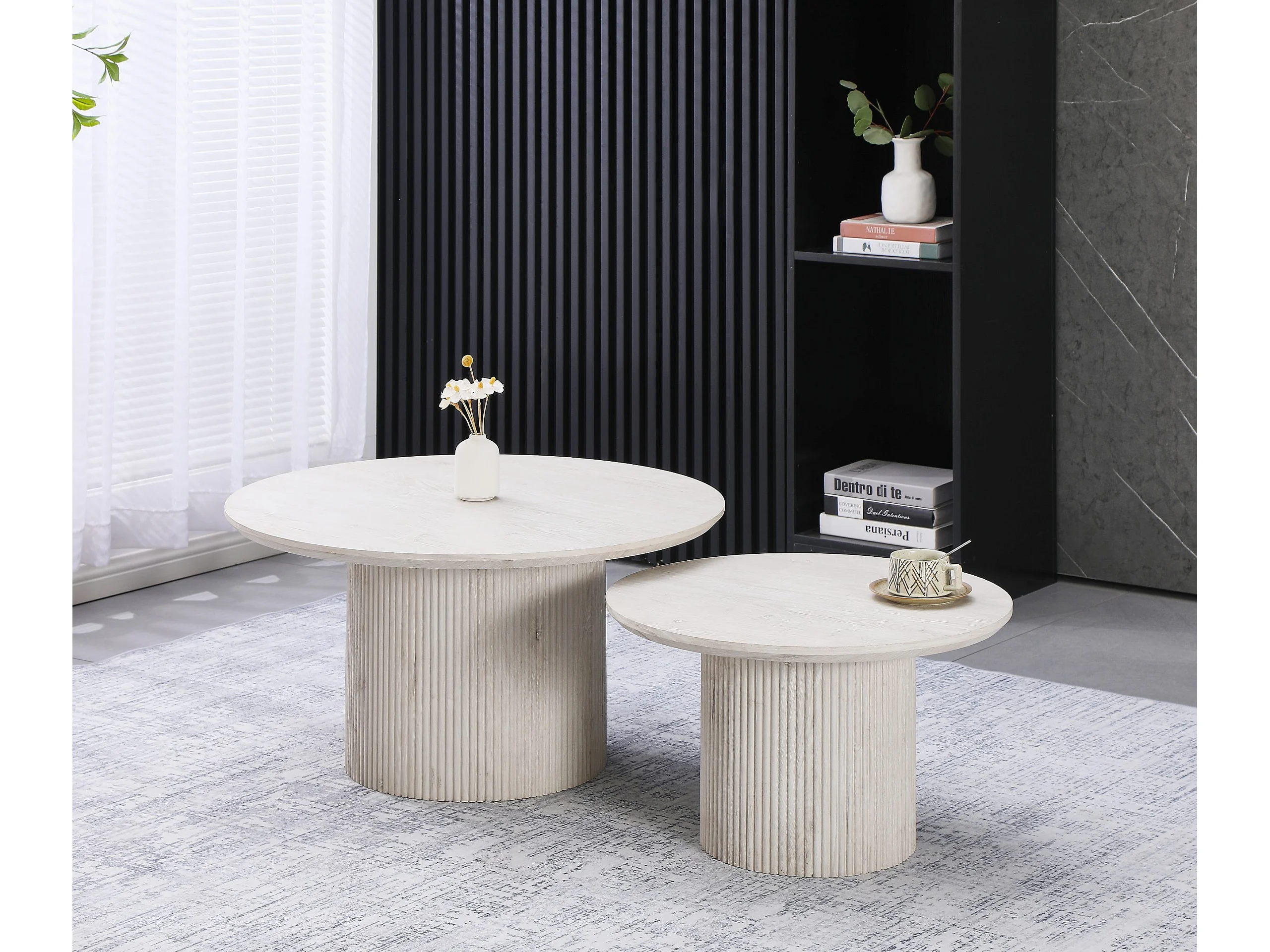 Lot de 2 tables basses - Effet bois chêne blanc cassé - Bois MDF - ESME