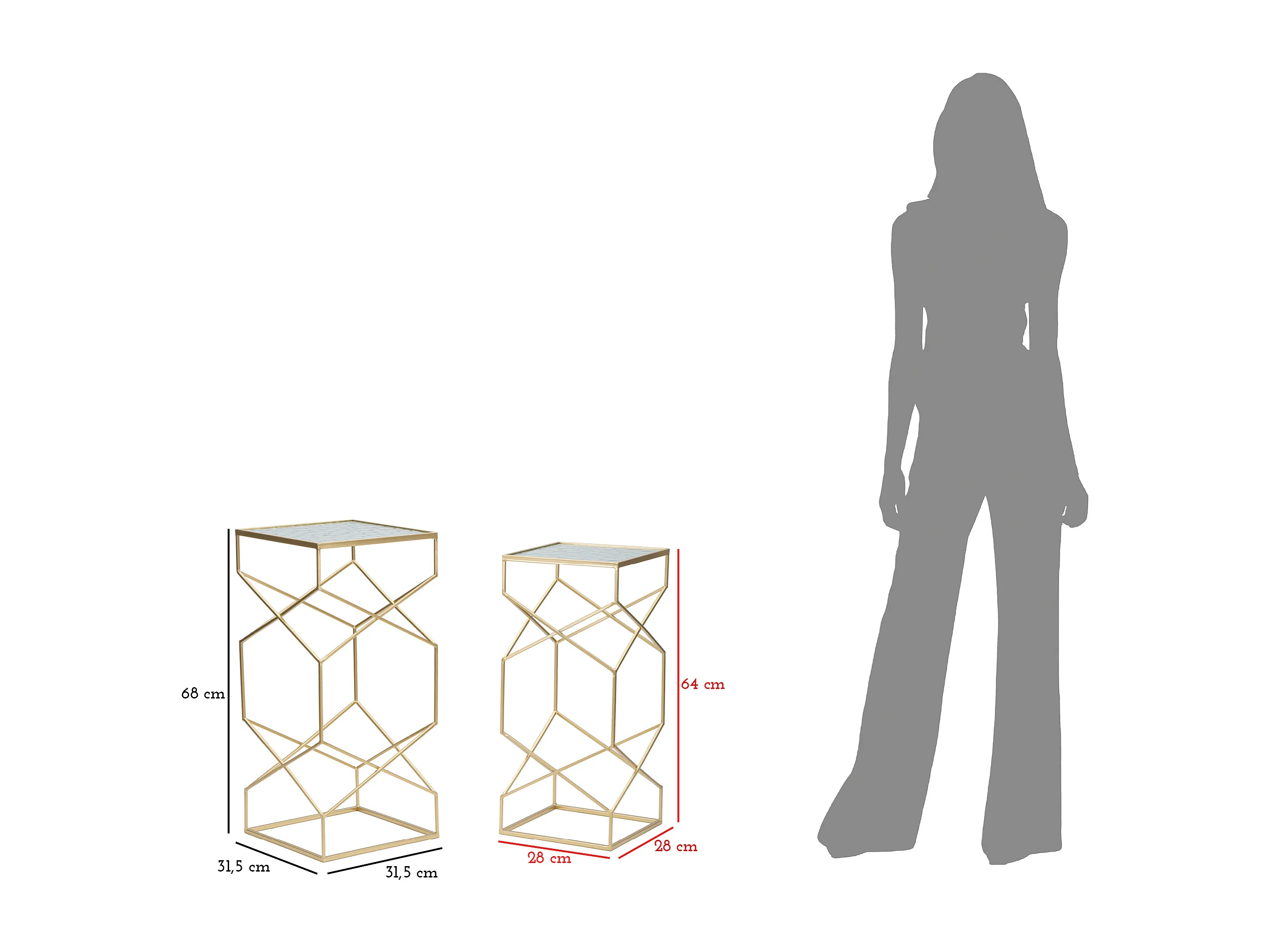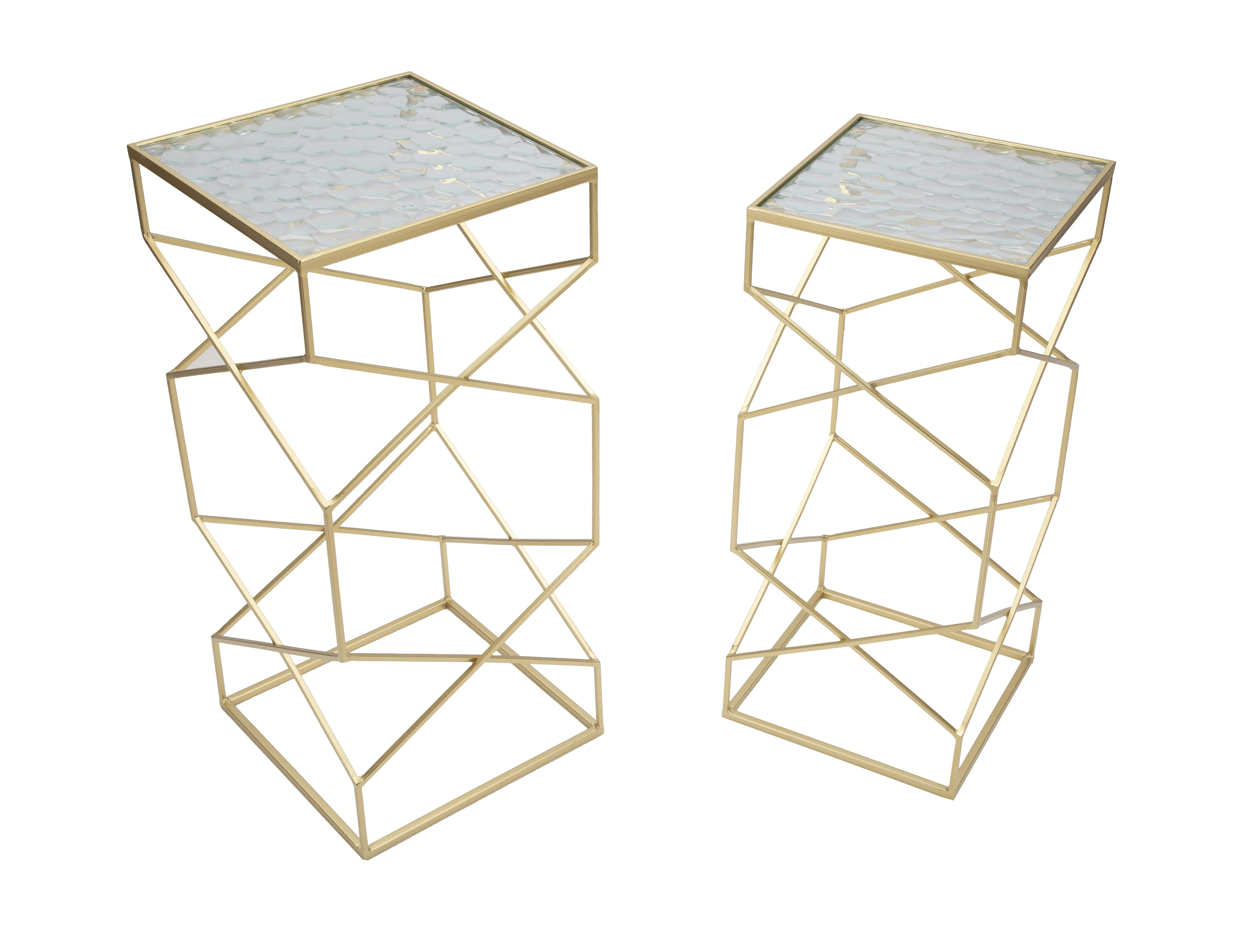 Lot de 2 Tables d'Appoint "Hexagone" 65cm Or