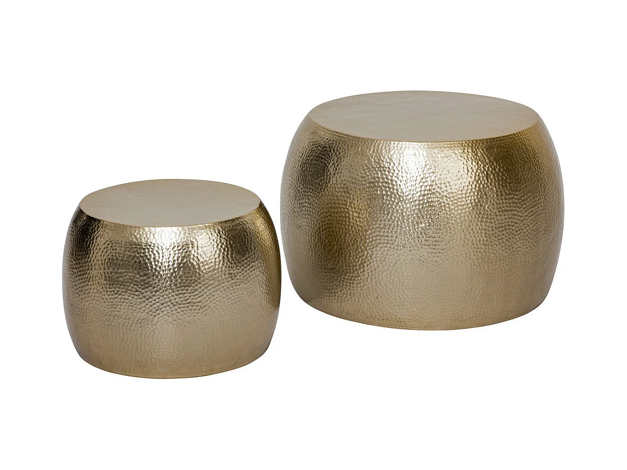 Lot de 2 Tables basses en métal doré martelé D 70 et D 50 cm