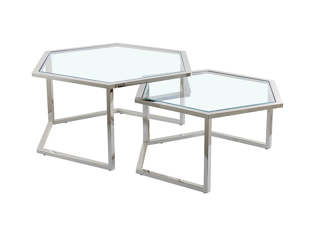 Lot de 2 Tables Basses Gigognes HEXAGONA Chrome