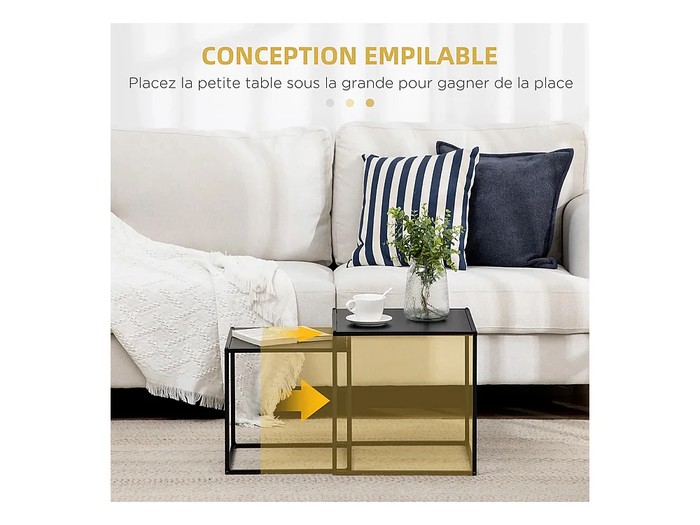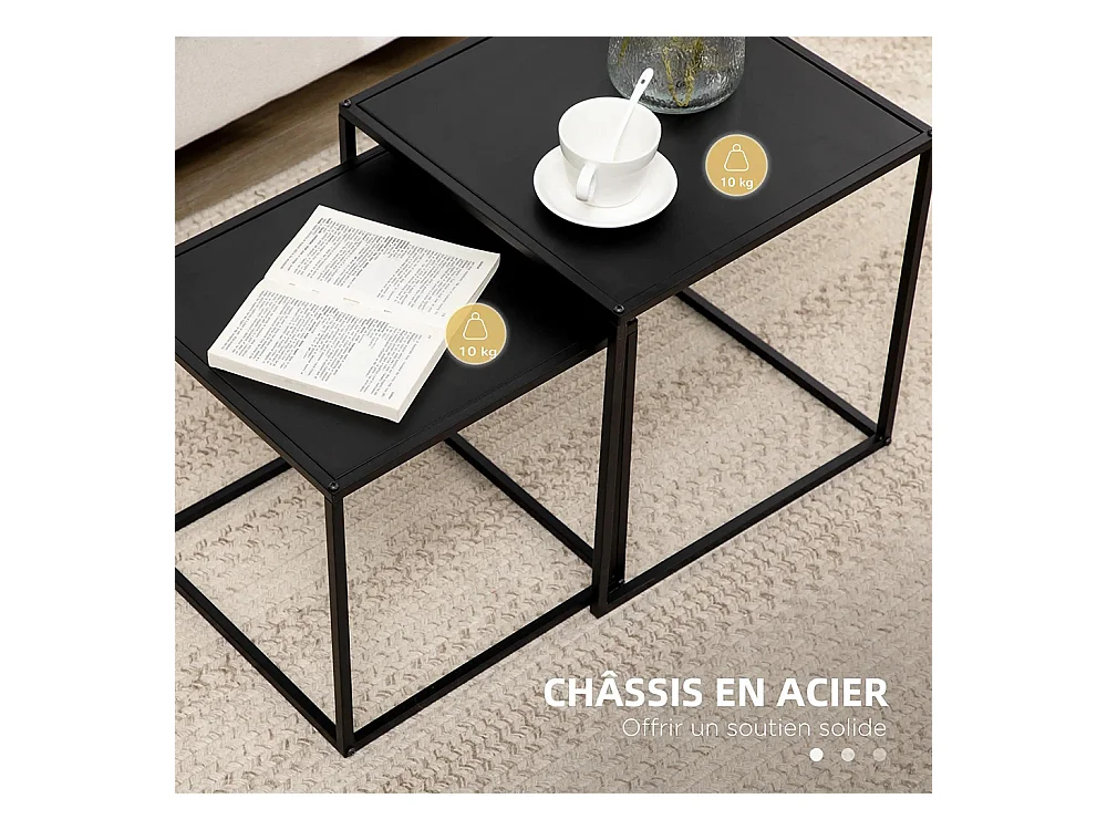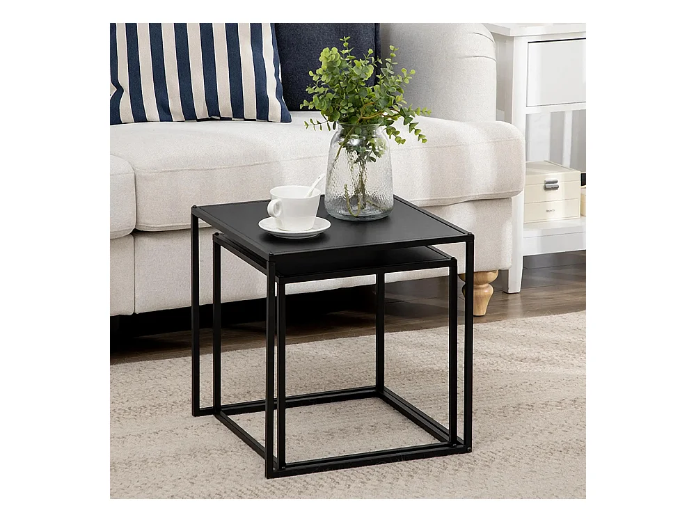 Lot de 2 Tables Basses gigognes, Carrées Table d'appoint, noir