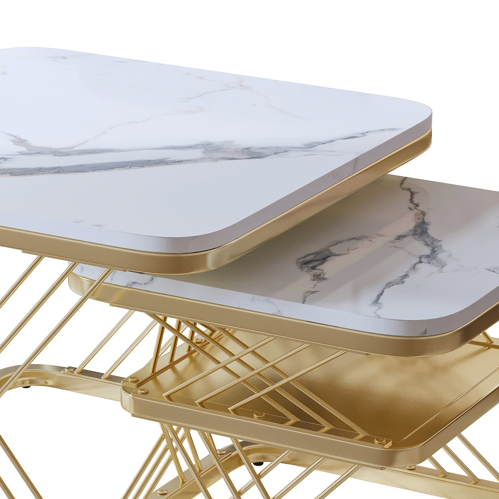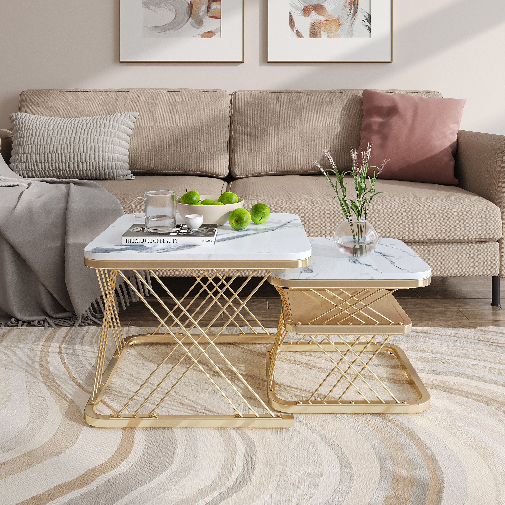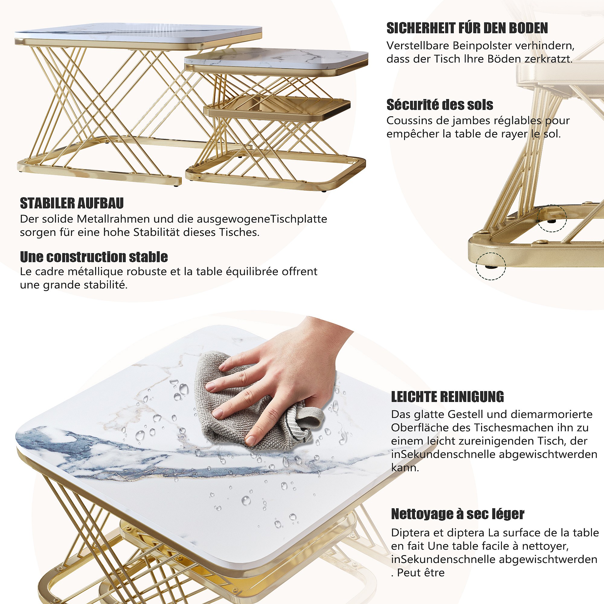Lot de 2 Tables Basses gigognes, Carrées Table d'appoint, doré
