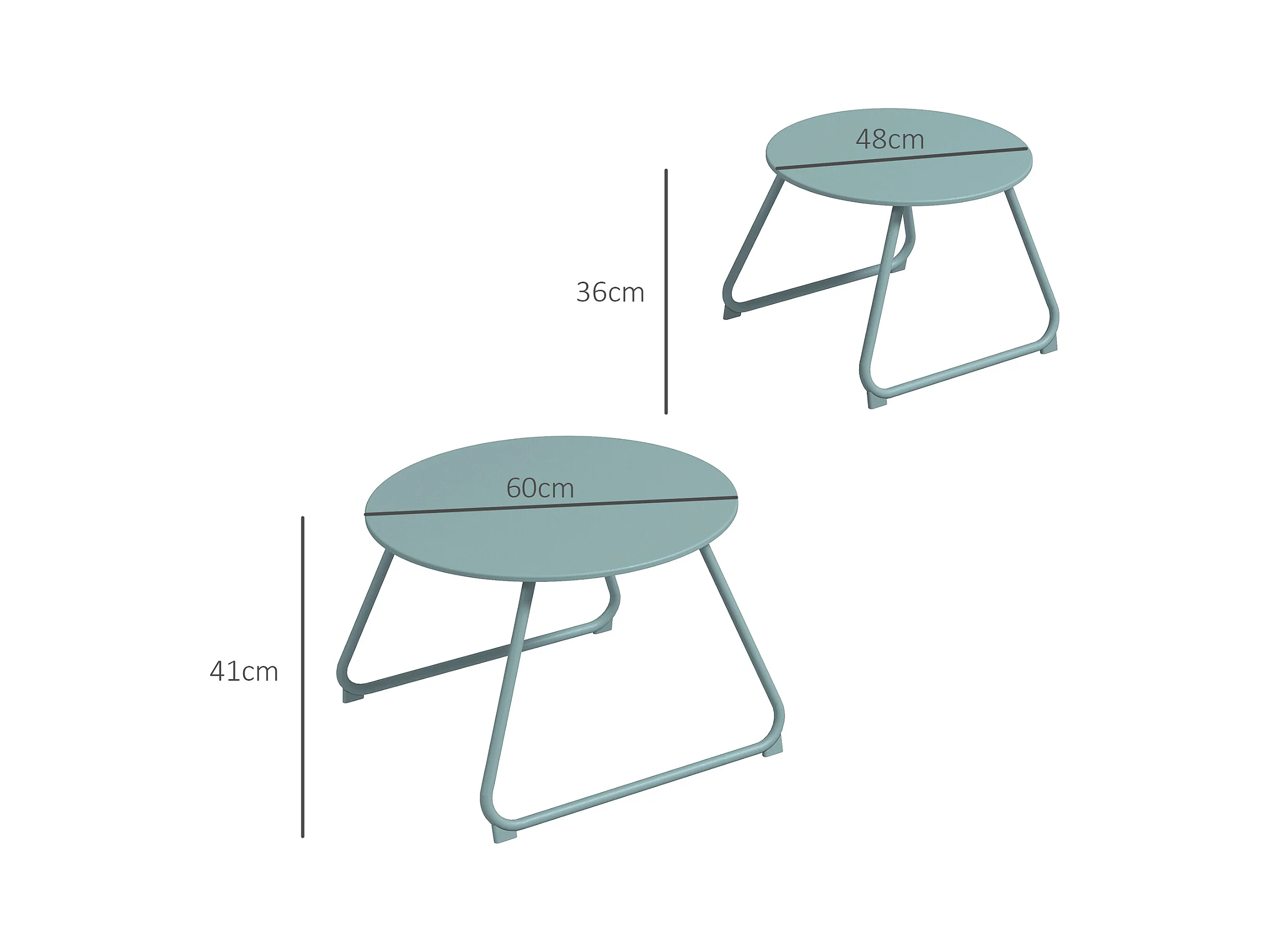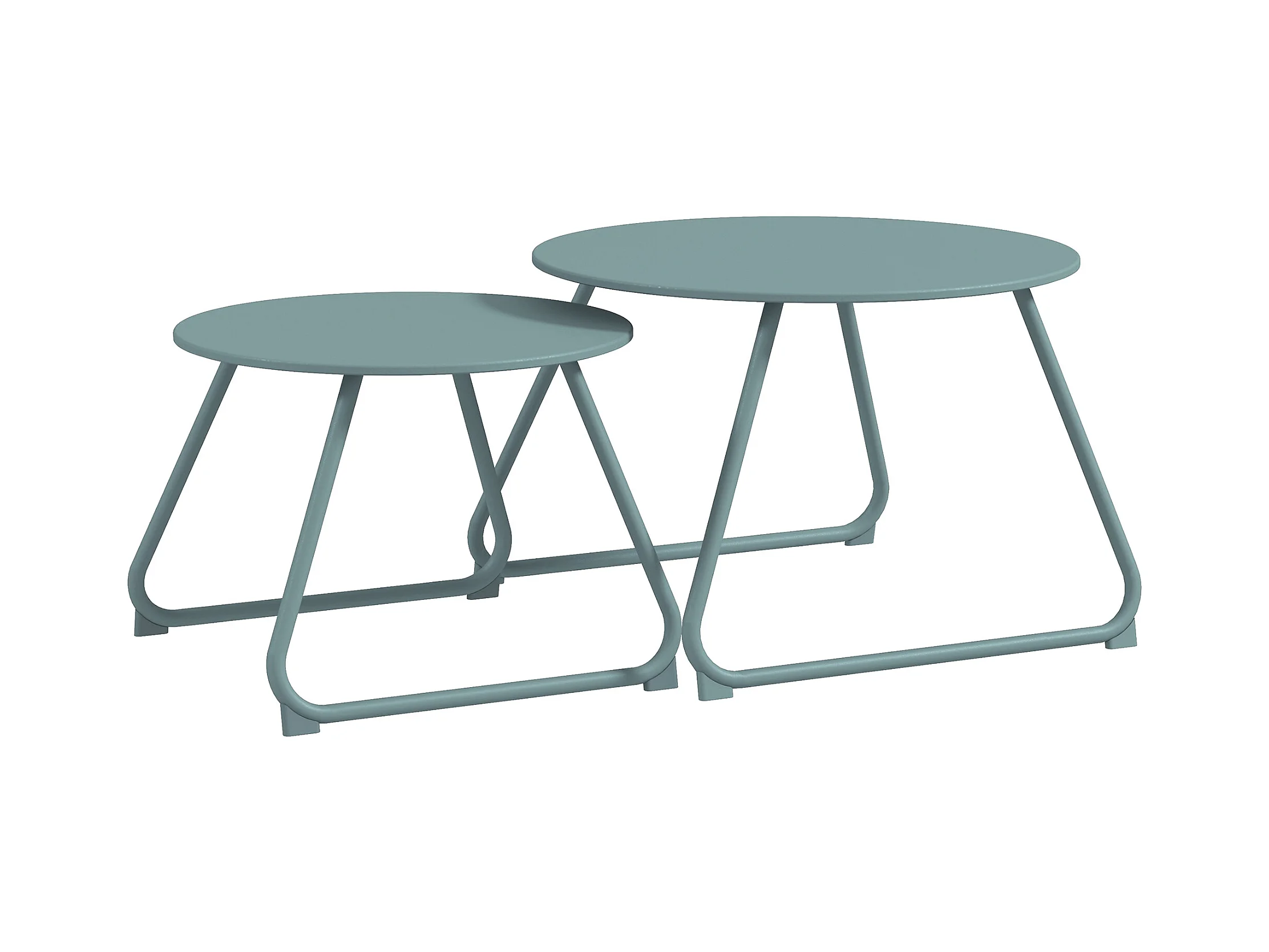 Lot de 2 tables basses de jardin en acier bleu pacific - Palavas