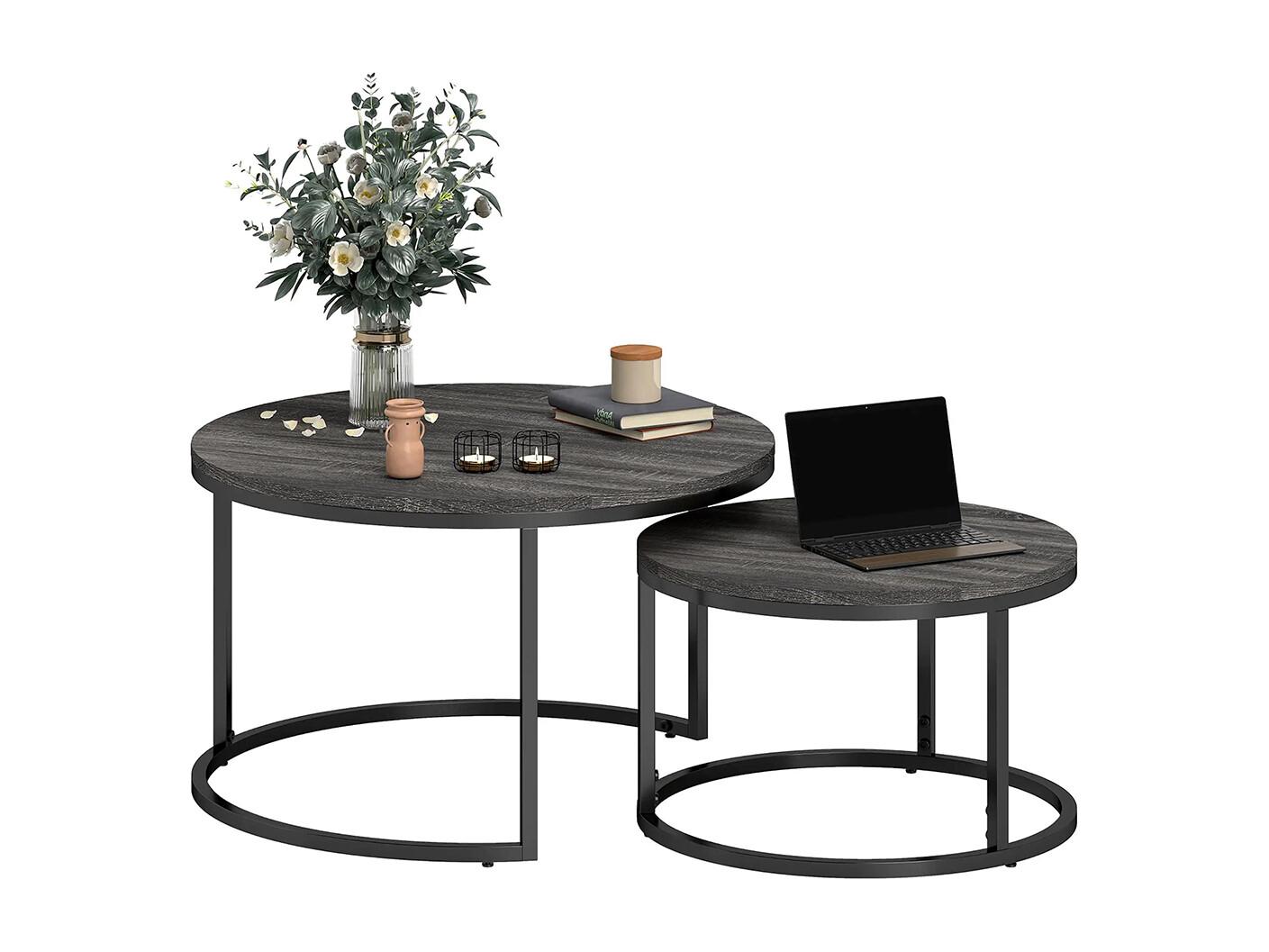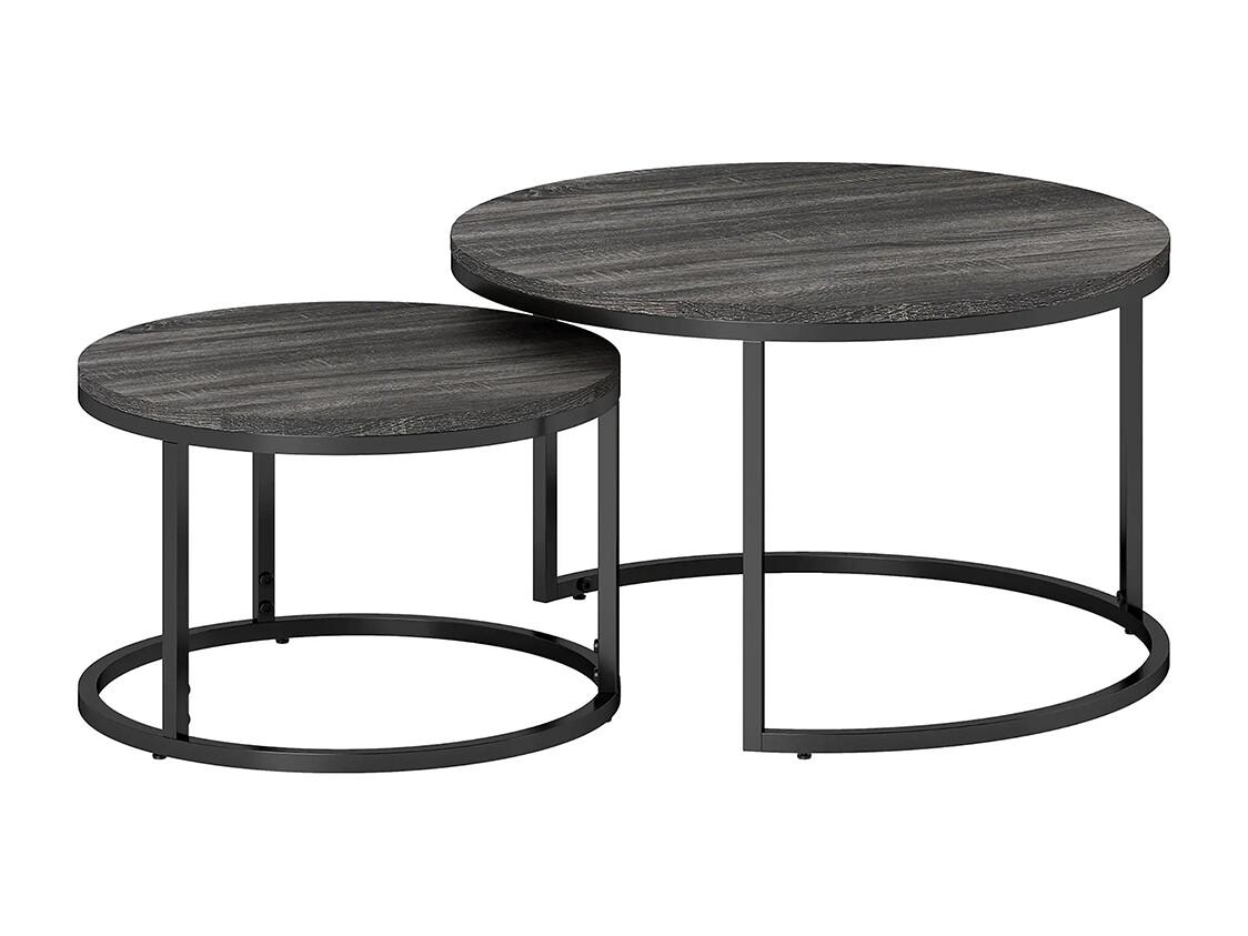 Lot de 2 Tables Basses Korenica Rondes Gigognes Noir [en.casa]