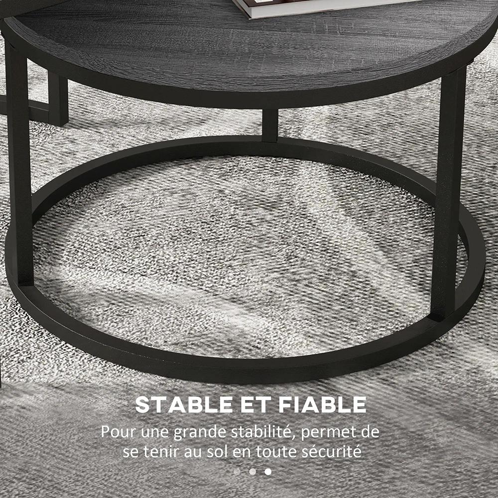 Lot de 2 tables basses rondes gigognes plateaux amovibles style industriel en acier Ø 43 et Ø 35 cm noir